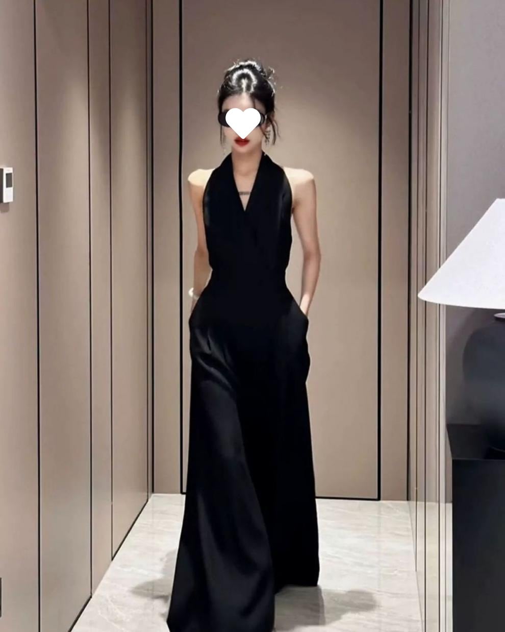 大人エレガントなホルターネックのパンツドレス。