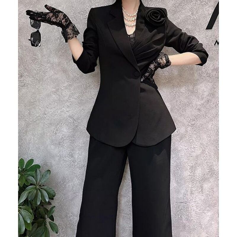 クールで大人エレガントなブラックカラーのパンツスーツ。