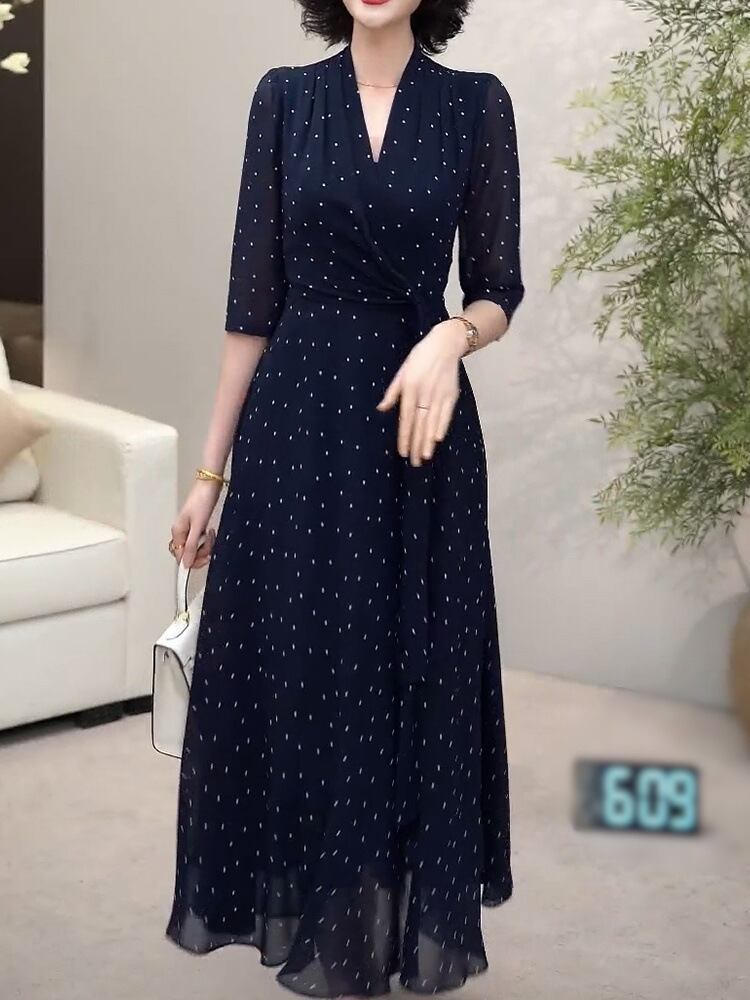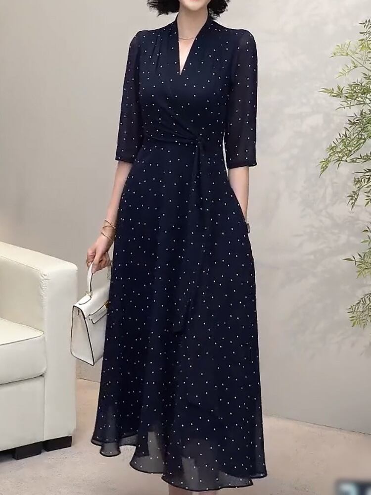 大人エレガントなシフォン素材のドット柄ワンピース。