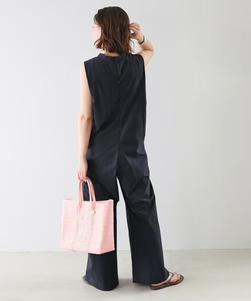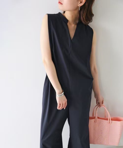 大人カジュアルなすっきりシルエットのオールインワン。