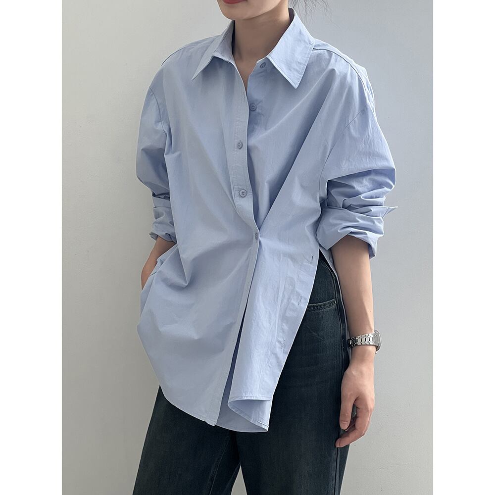 【シャツ】 レディース おしゃれ 長袖 ブラウス トップス シャツ 20代 30代 40代 春 夏 秋 冬 カジュアル 可愛い きれいめ シンプル ホワイト 白 ネイビー 青 水色 M L