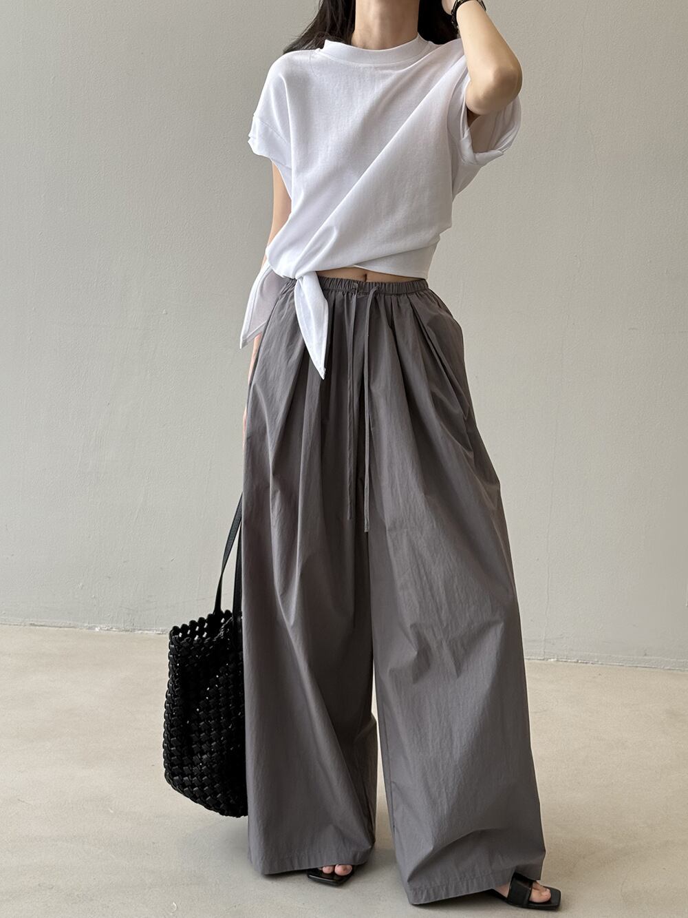 ボトムにワイドパンツをあわせてこなれ感をプラスしても◎