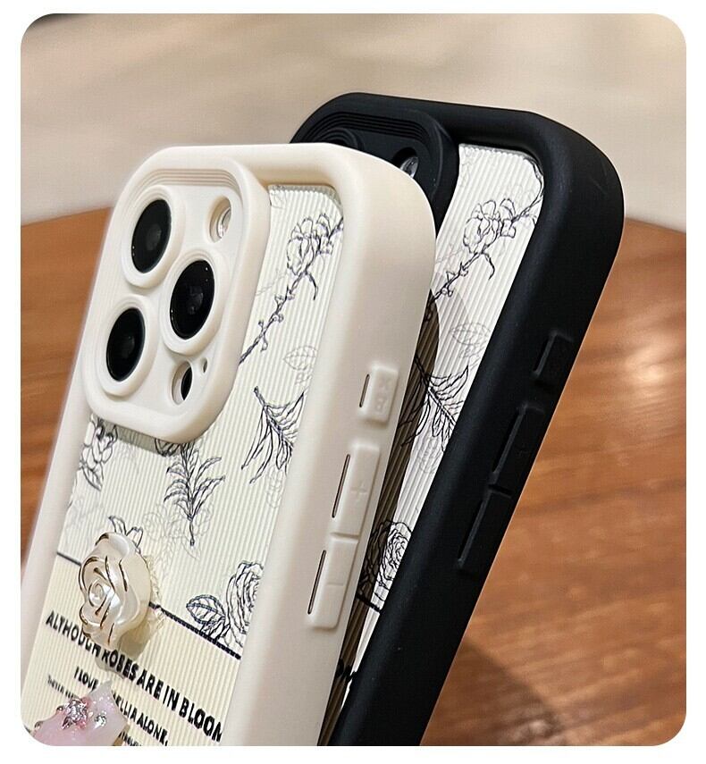当店人気!大人可愛いホワイトの立体バラモチーフ付きiPhoneケース。