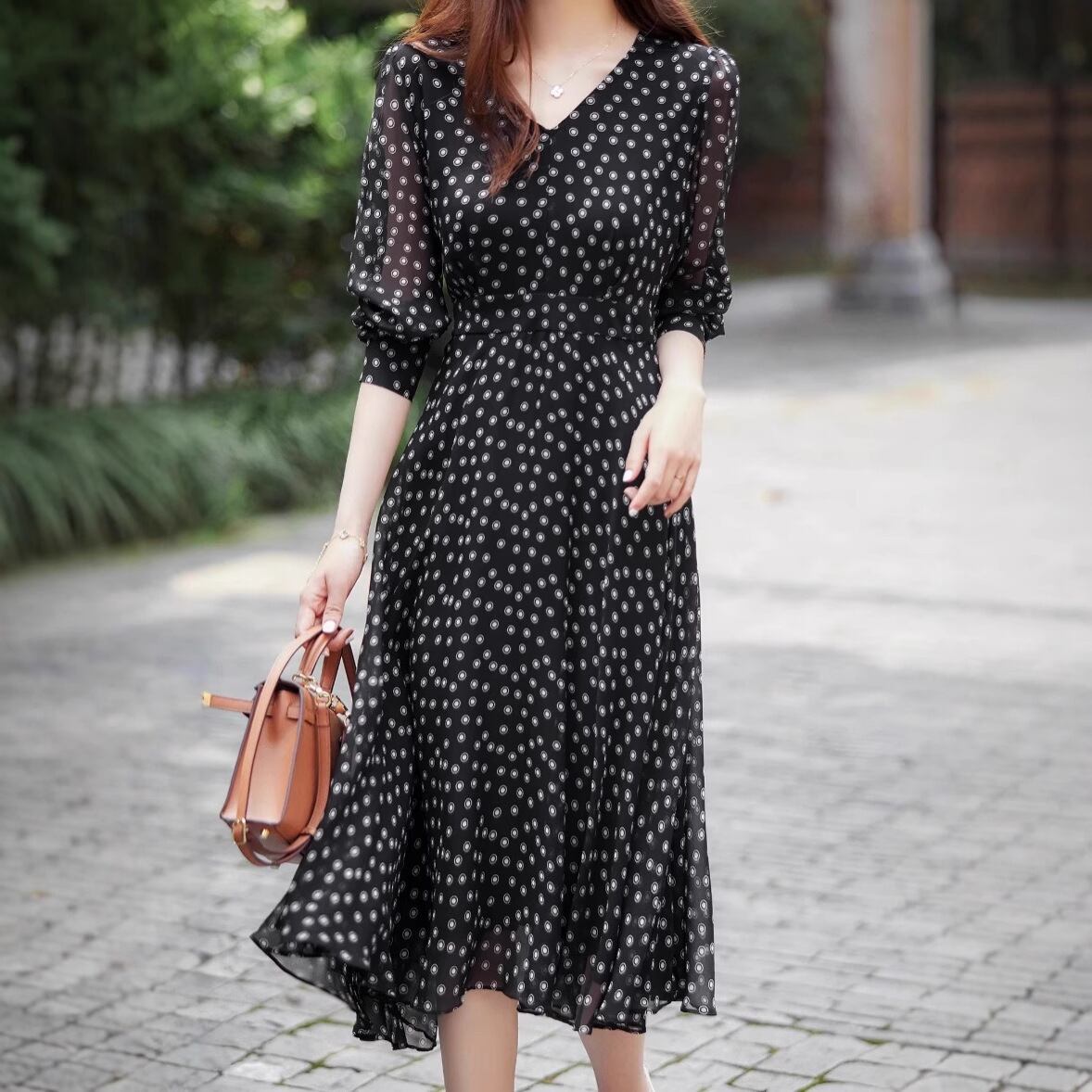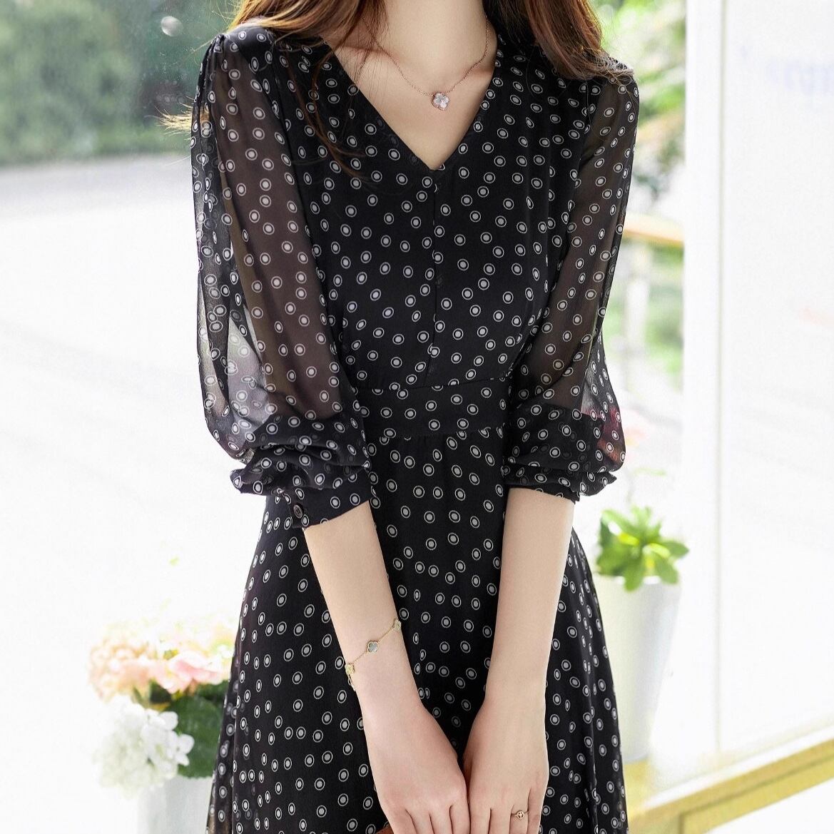 【ワンピース】ワンピース レディース おしゃれ きれいめ 可愛い 春 秋 冬 ワンピース 20代 30代 40代 ひざ下 膝下 ワンピース 春秋 袖あり 韓国 ワンピース ドット S M L XL