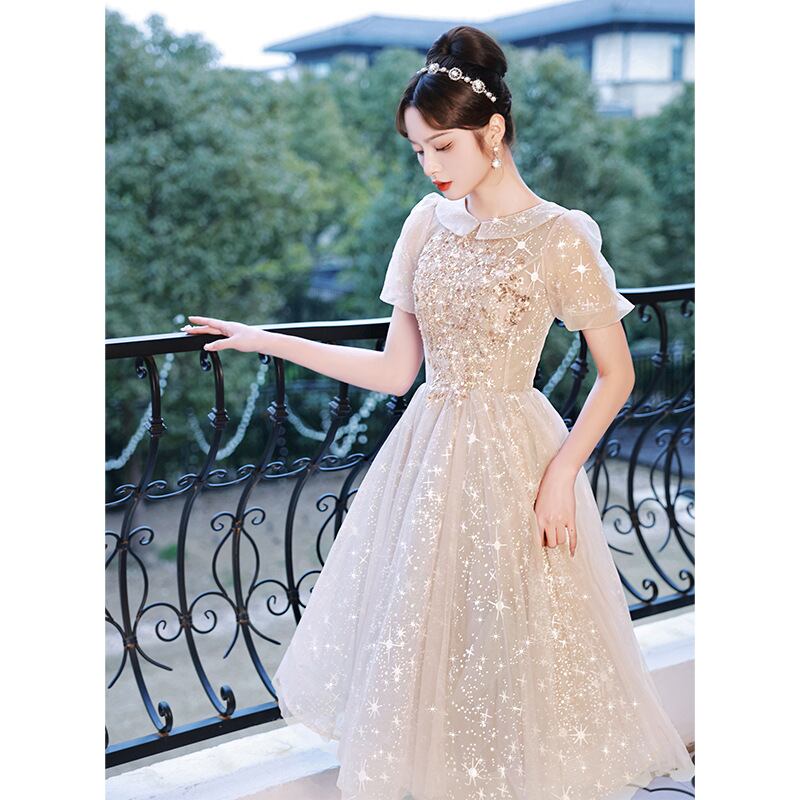 【パーティードレス】大きいサイズ パーティードレス 結婚式 結婚式のお呼ばれ 20代 30代 40代 ワンピース 膝丈 体型カバー お呼ばれドレス フォーマルドレス 二次会 パーティー お呼ばれ 袖あり お呼ばれ フォーマル フォーマルワンピース おしゃれ グレー シャンパン S M L XL 2XL