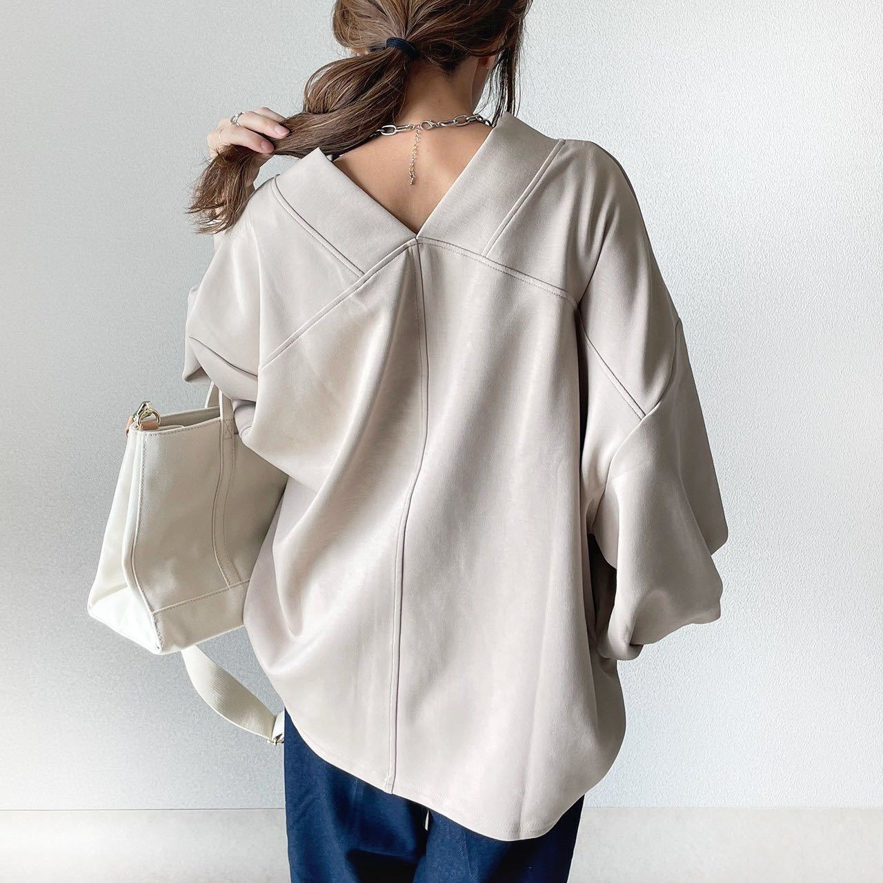 前後vネックで襟足も華奢にすっきりと見せる。