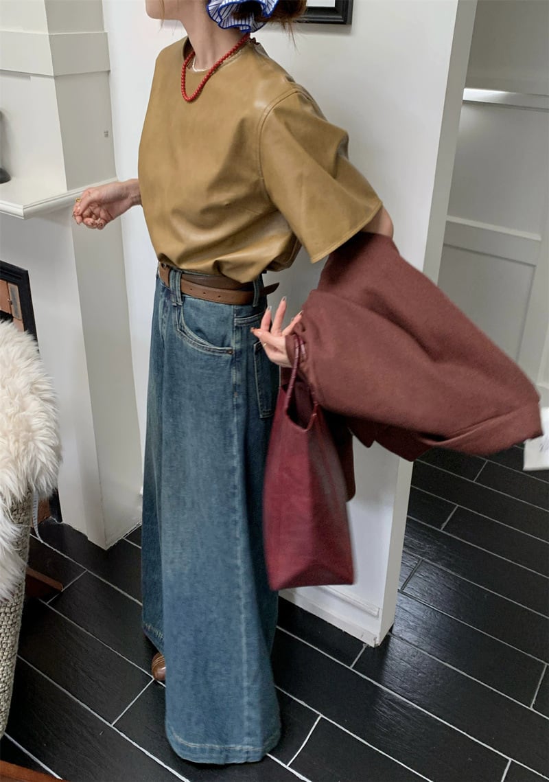 大人カジュアルなワイドデニムパンツ。