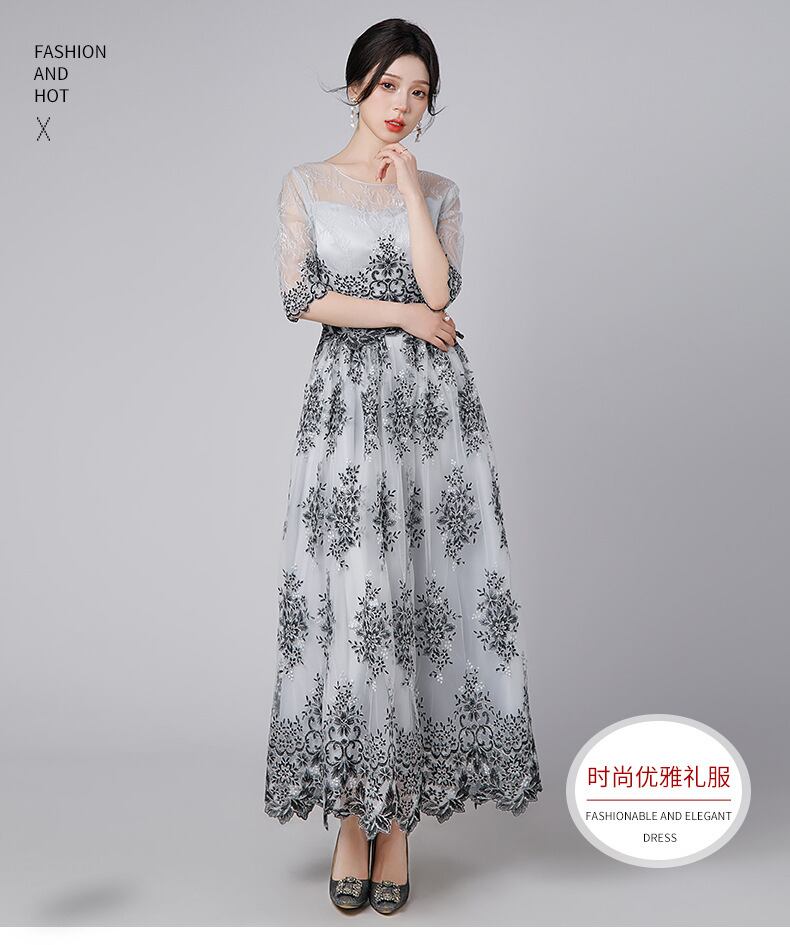 【パーティードレス】大きいサイズ 小さいサイズ パーティードレス 結婚式 結婚式のお呼ばれ 20代 30代 40代 ワンピース ロング 体型カバー お呼ばれドレス フォーマルドレス 二次会 パーティー お呼ばれ 袖あり お呼ばれ フォーマル フォーマルワンピース おしゃれ グレー XS S M L XL 2XL 3XL