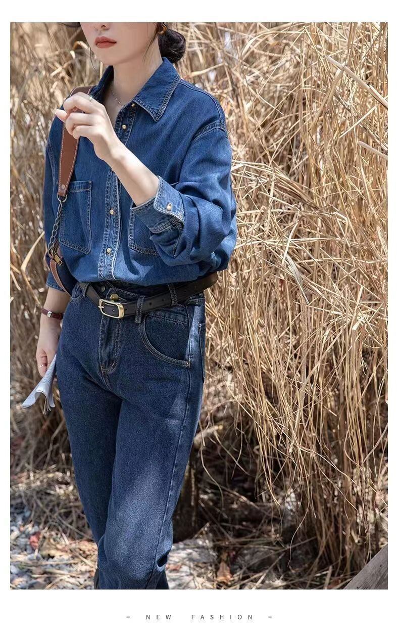 【シャツ】 シャツ レディース 大人 可愛い トップス デニム シャツ ブラウス 韓国 ブラウス 春 夏 秋 冬 20代 30代 40代 シンプル オフィス レディース フォーマル 体型カバー きれいめ 長袖 ネイビー 青 S M L XL