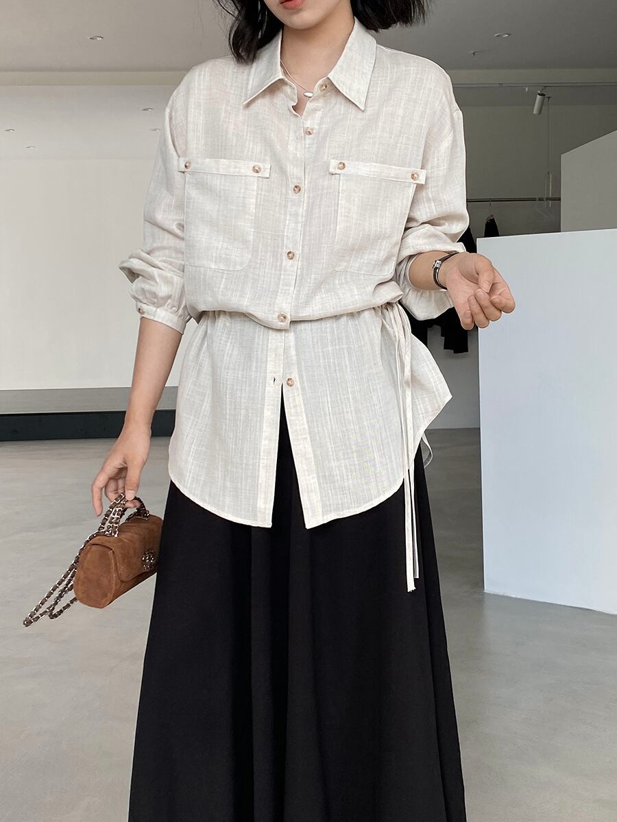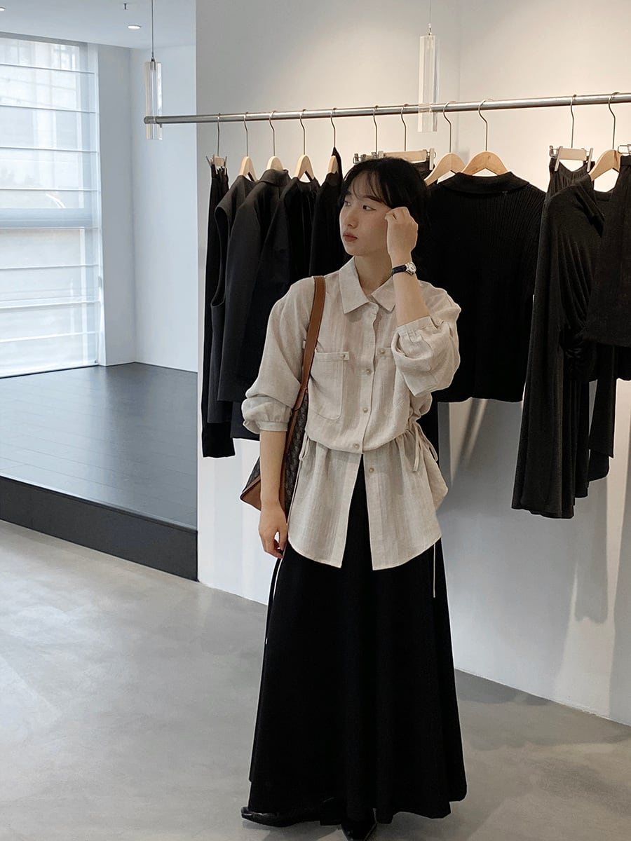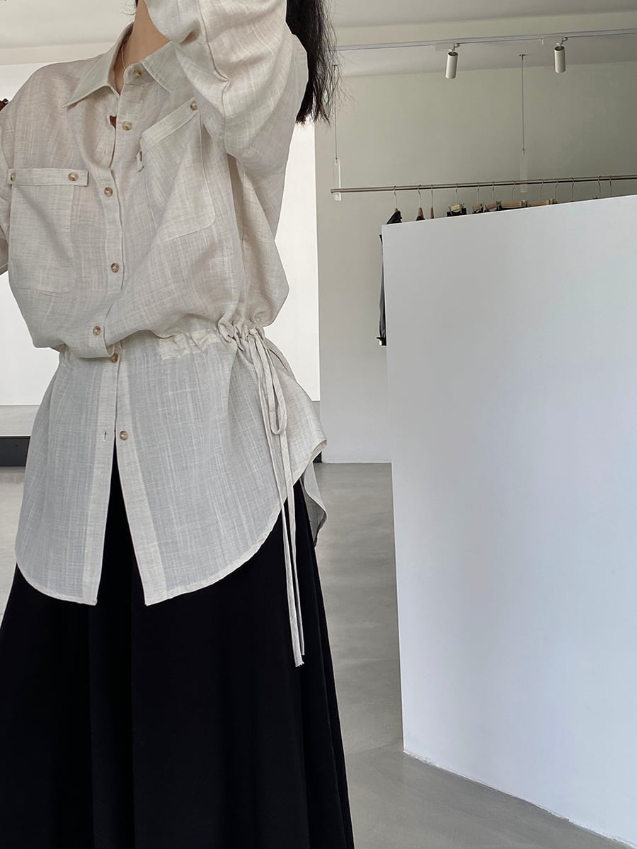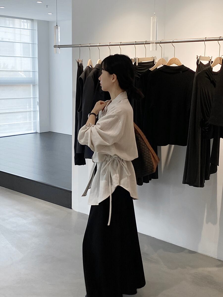 ウエストのドロストでウエストが絞れる細見え効果絶大なブラウス。