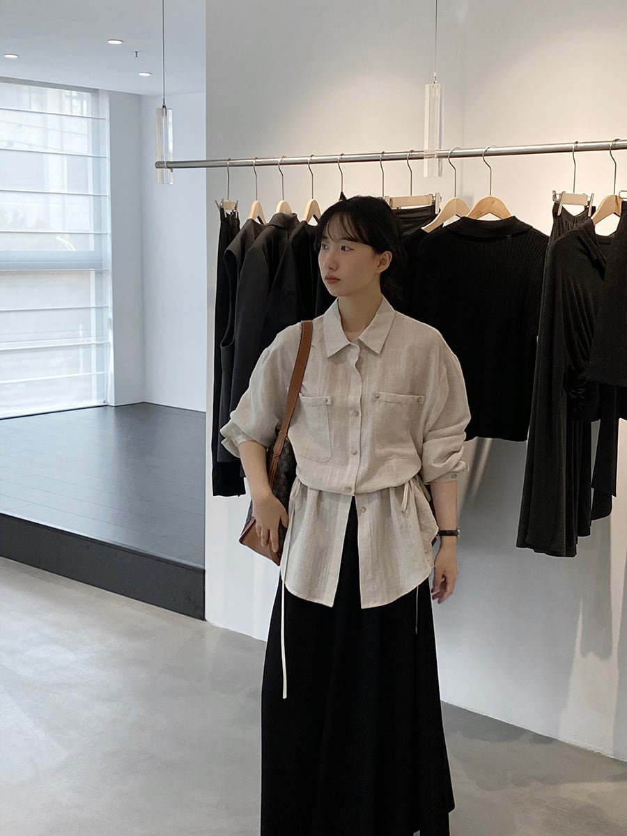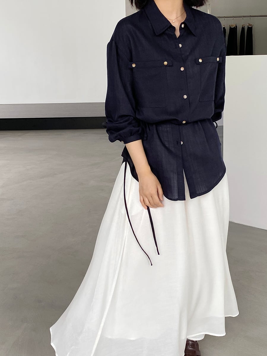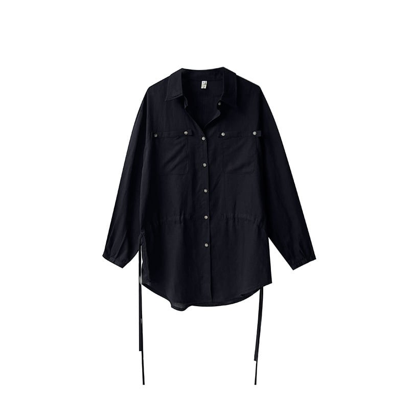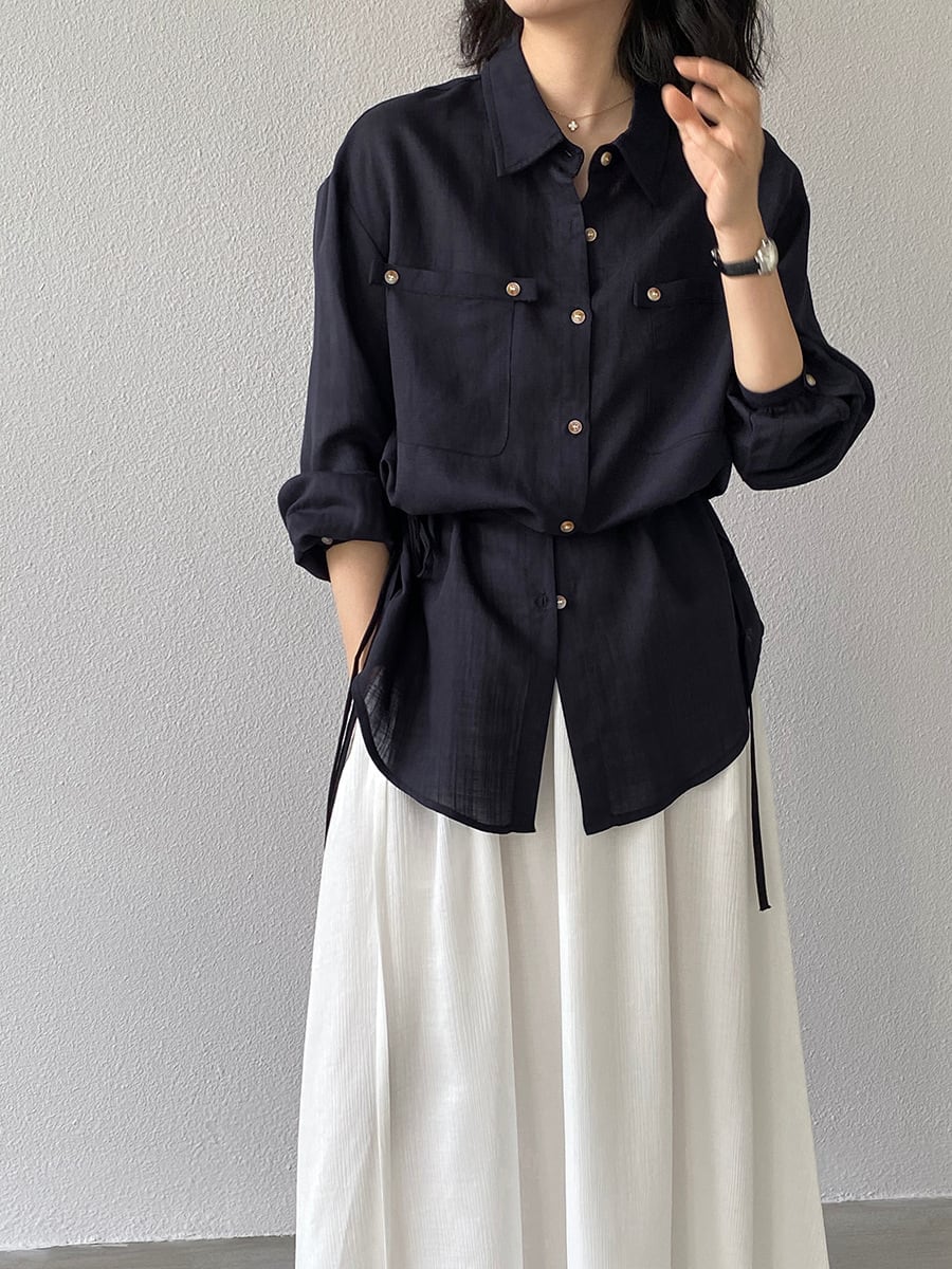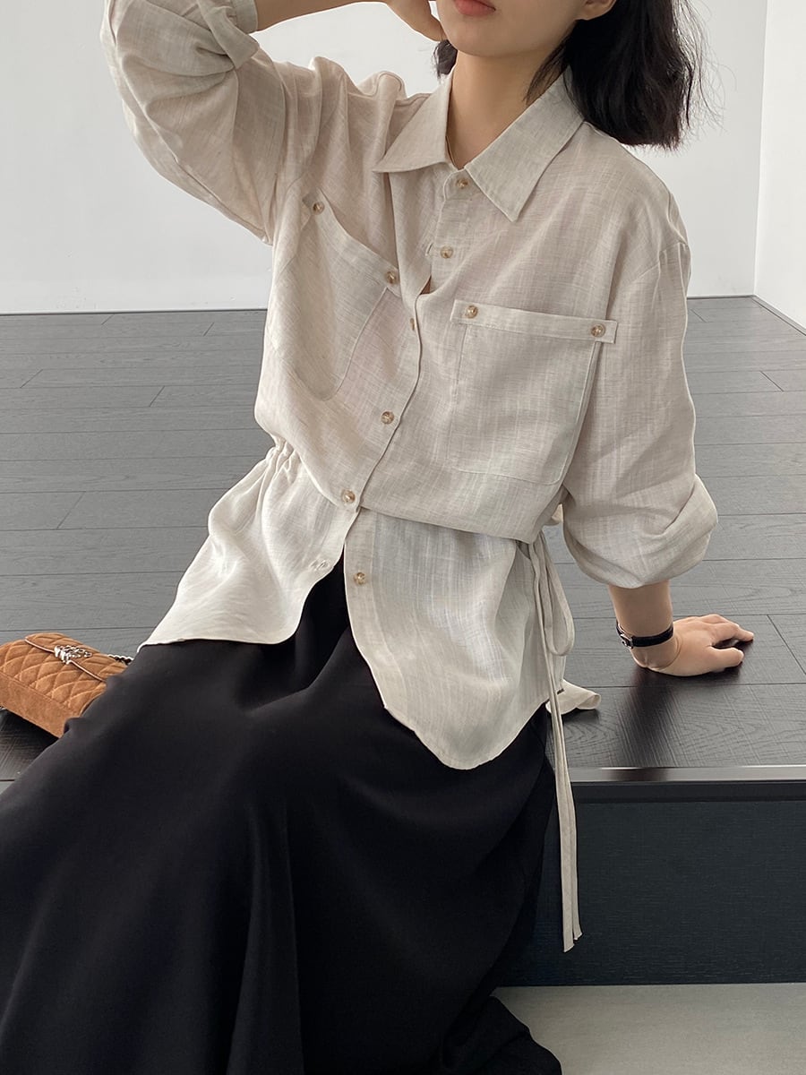 ウエストのドロストでウエストが絞れる細見え効果絶大なブラウス。