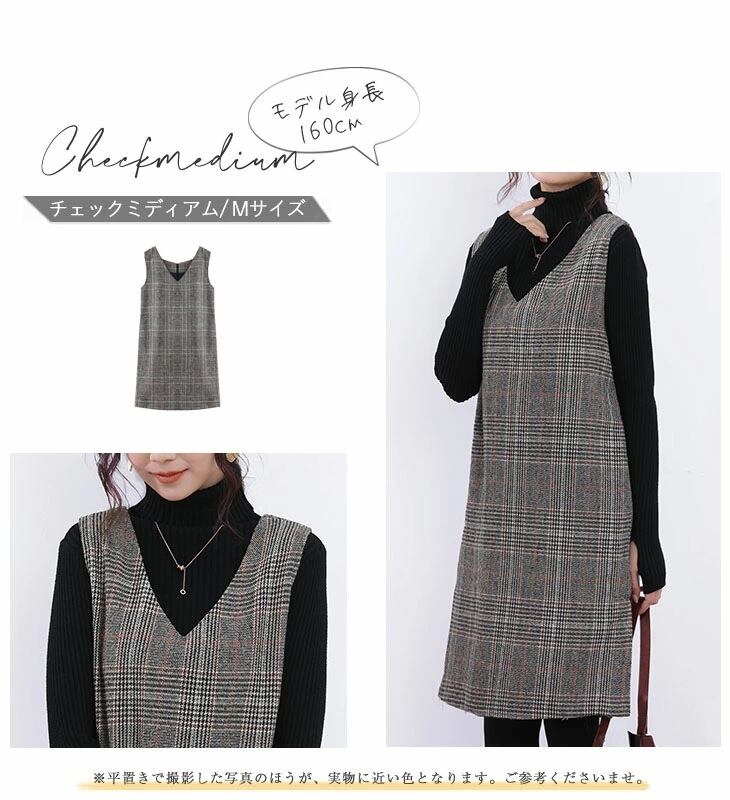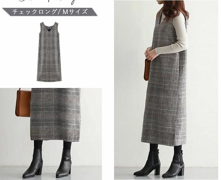 【ワンピース】 ジャンパースカート サロペット スカート ワンピース 20代 30代 40代 レディース 膝丈 ひざ丈 ロング レディース 秋 春 冬 大人 可愛い きれいめ おしゃれ チェック グレー M L XL