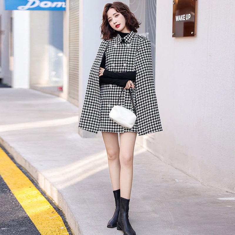 当店人気!大人エレガントな千鳥格子のポンチョコート。