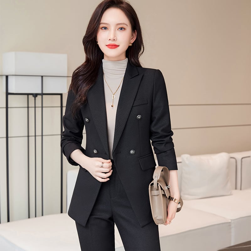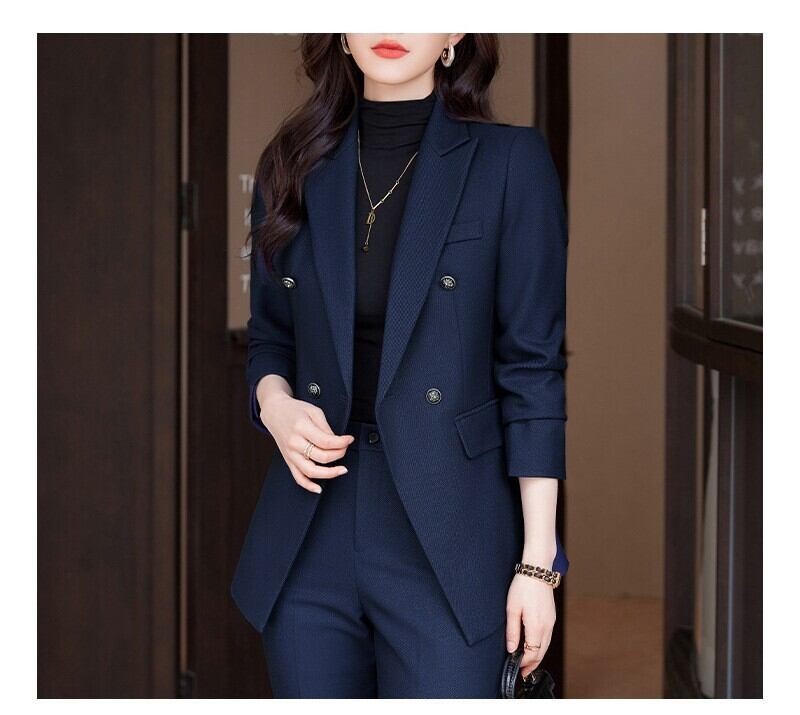 ダブルながらウエストがシェイプされておりスタイルアップ効果も。