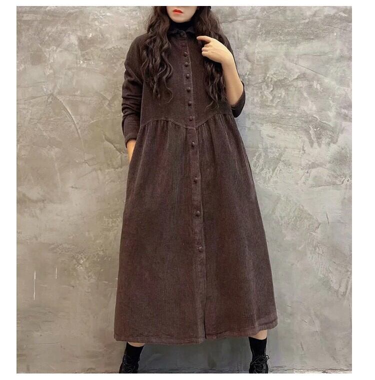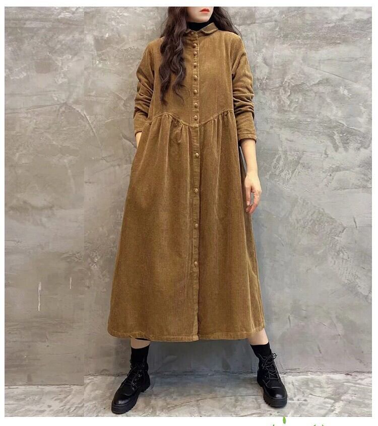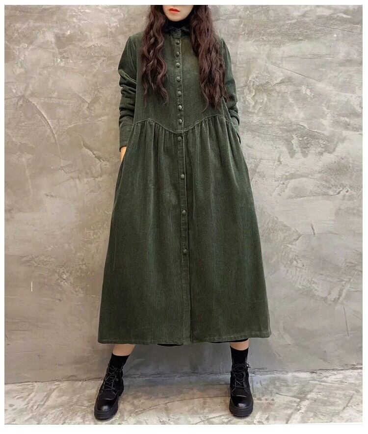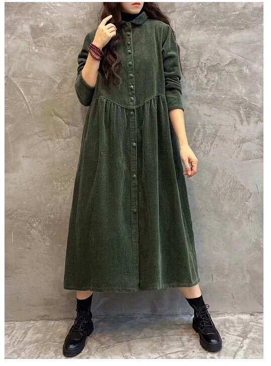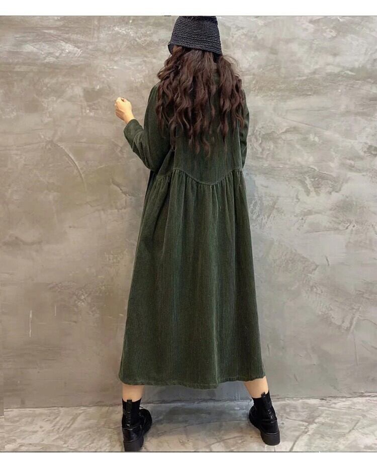 【ワンピース】大きいサイズ ワンピース レディース おしゃれ きれいめ 可愛い 春 秋 冬 ワンピース 20代 30代 40代 ロング ワンピース 春秋 無地 長袖 ワンピースドレス 韓国 ワンピース ドレス ワンピース コーデュロイ ブラック 黒 グリーン 緑 ブラウン ブリックレッド 赤 M L XL 2XL