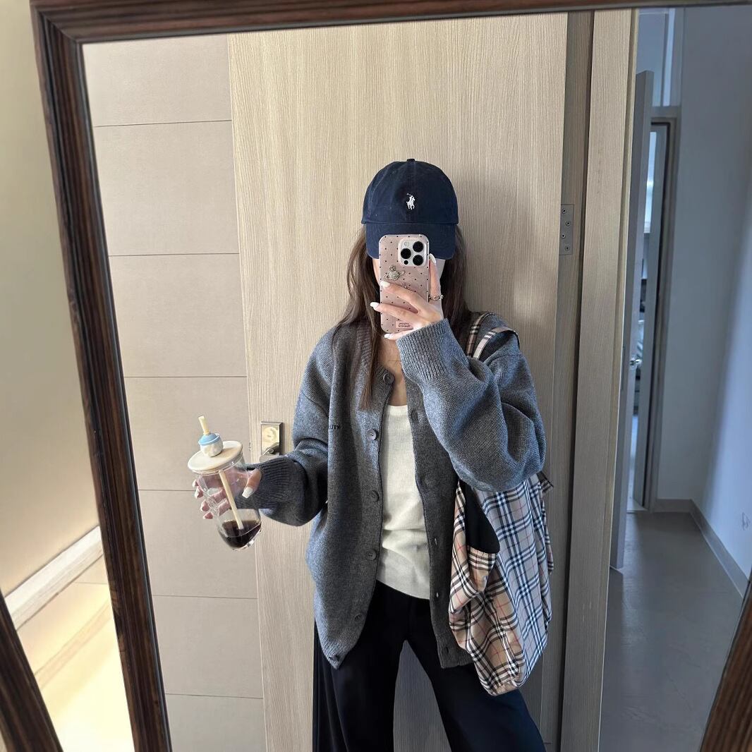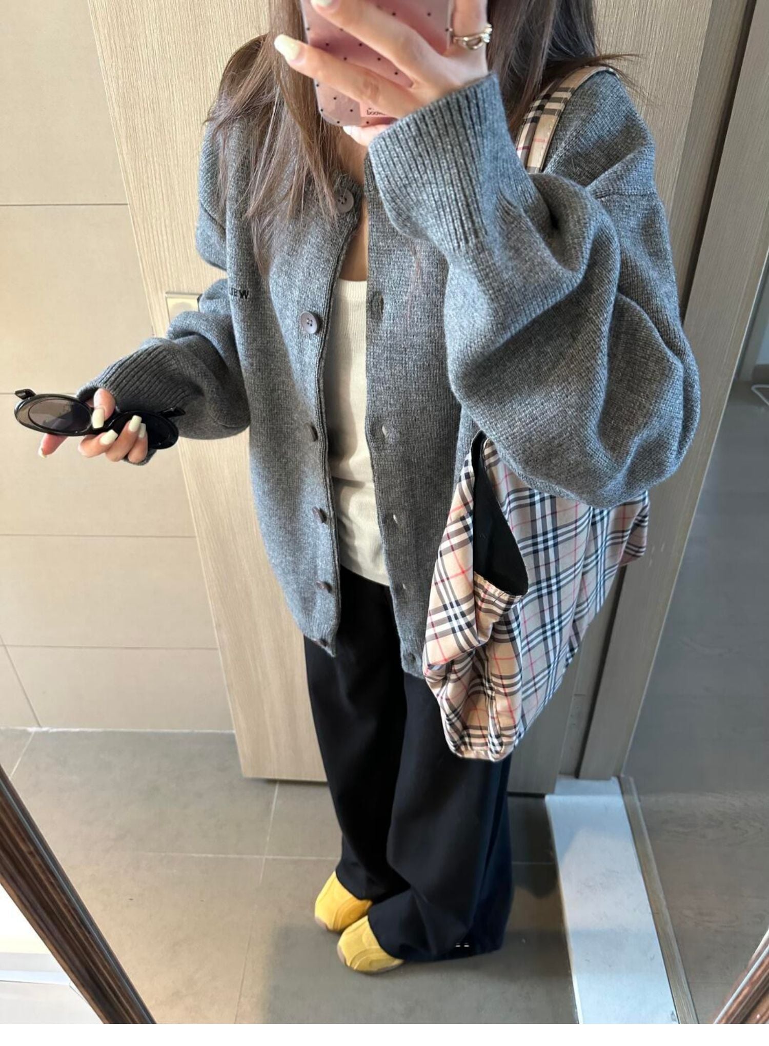 【カーディガン】大きいサイズ カーディガン レディース おしゃれ 韓国 春 秋 冬 20代 30代 40代 ニット カーディガン 長袖 トップス グレー ブラック 黒 S M L XL 2XL