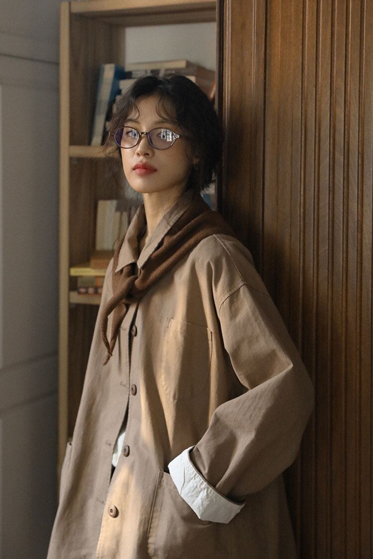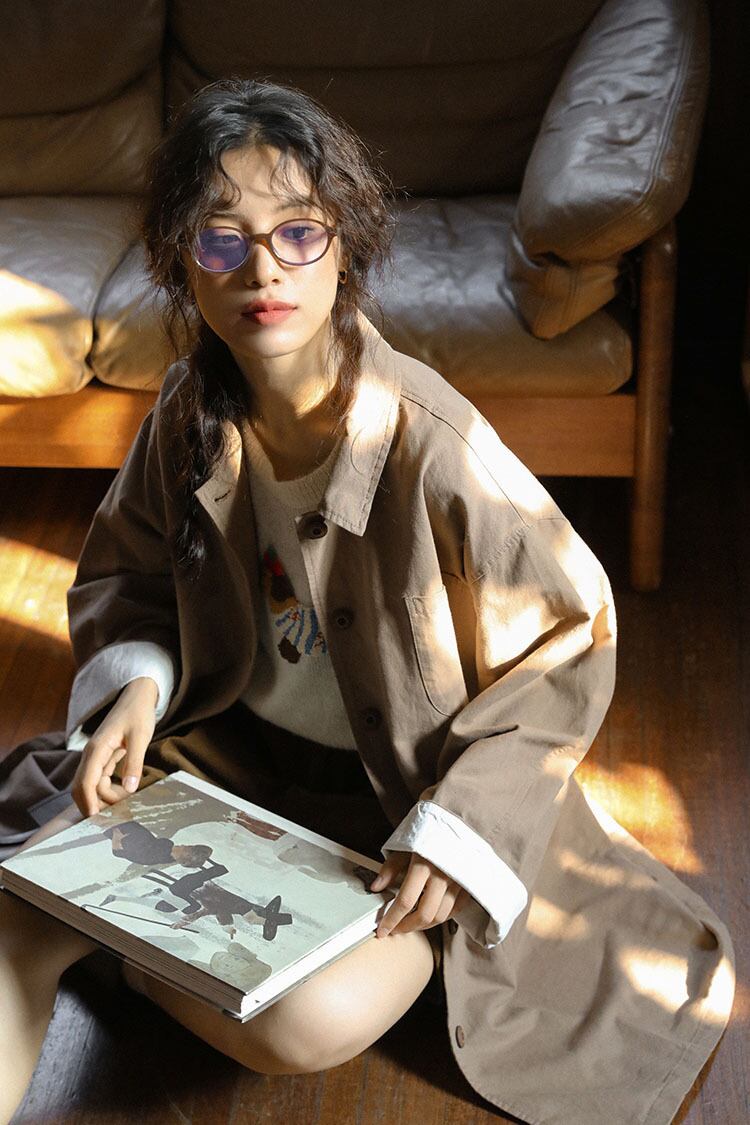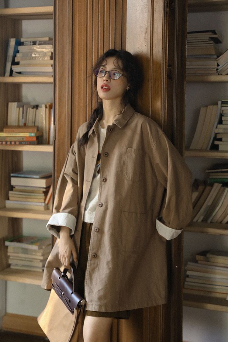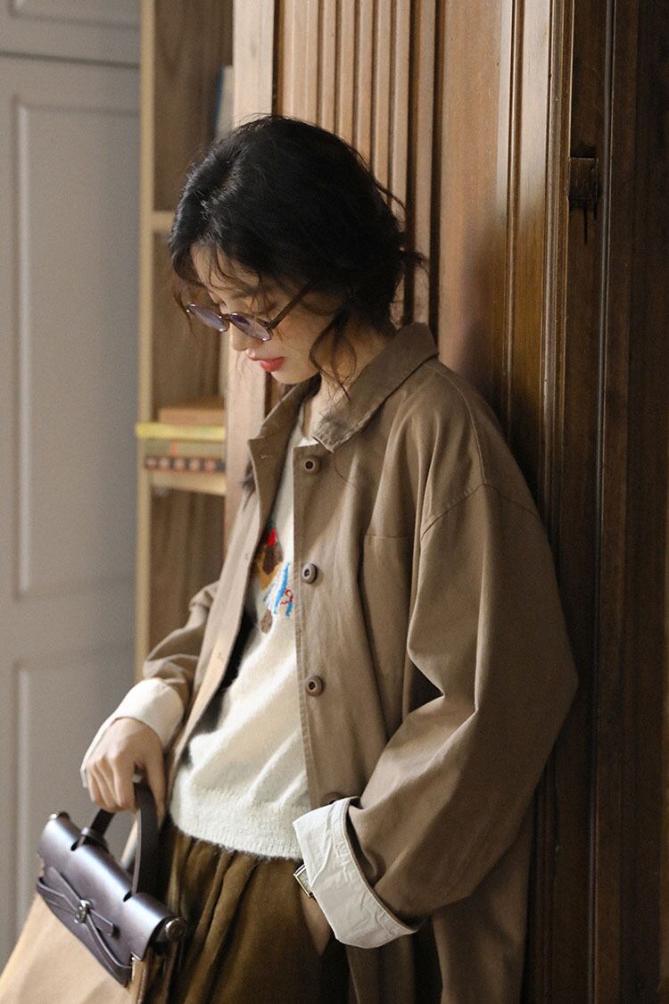 折り返しのお色が異なるおしゃれなミドル丈のカバーオール。