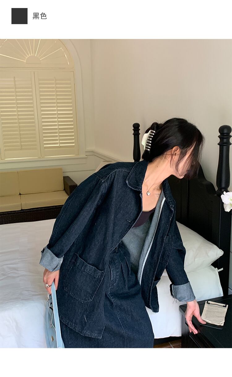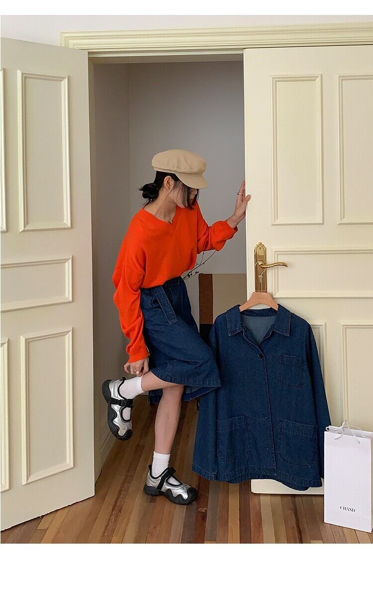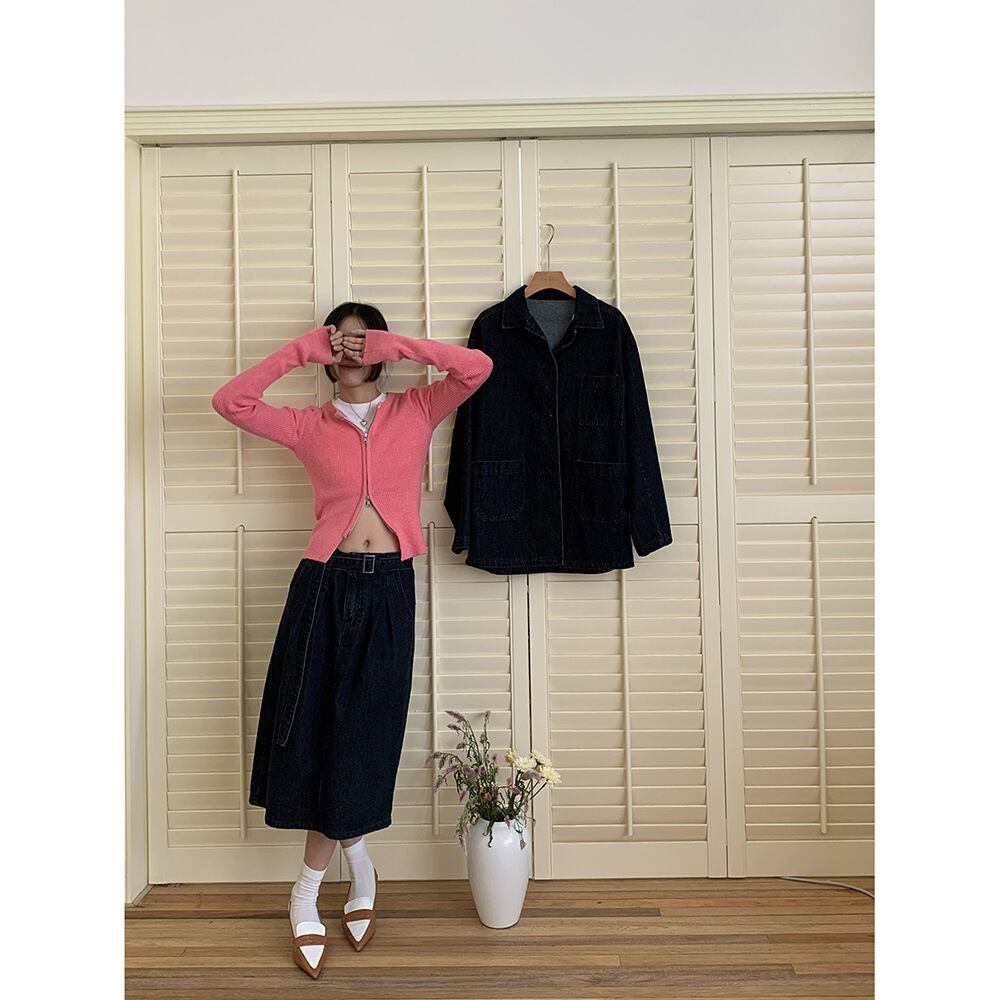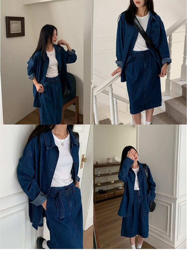 大人可愛いデニムカバーオール+スカートのセットアップ。