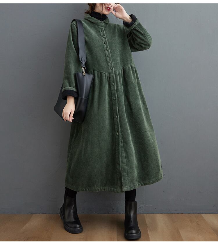 【ワンピース】大きいサイズ ワンピース レディース おしゃれ きれいめ 可愛い 春 秋 冬 ワンピース 20代 30代 40代 ロング ワンピース 春秋 無地 長袖 ワンピースドレス 韓国 ワンピース ドレス ワンピース コーデュロイ ブラック 黒 グリーン 緑 ブラウン 茶色 ブリックレッド 赤 M L XL 2XL