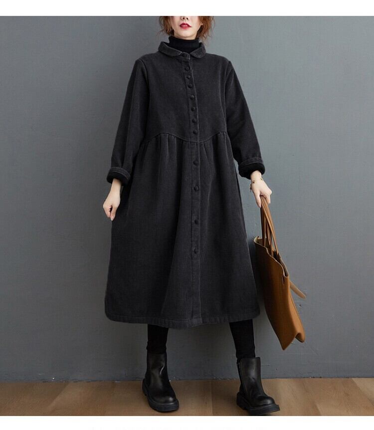大人可愛いコーデュロイのシャツワンピース。