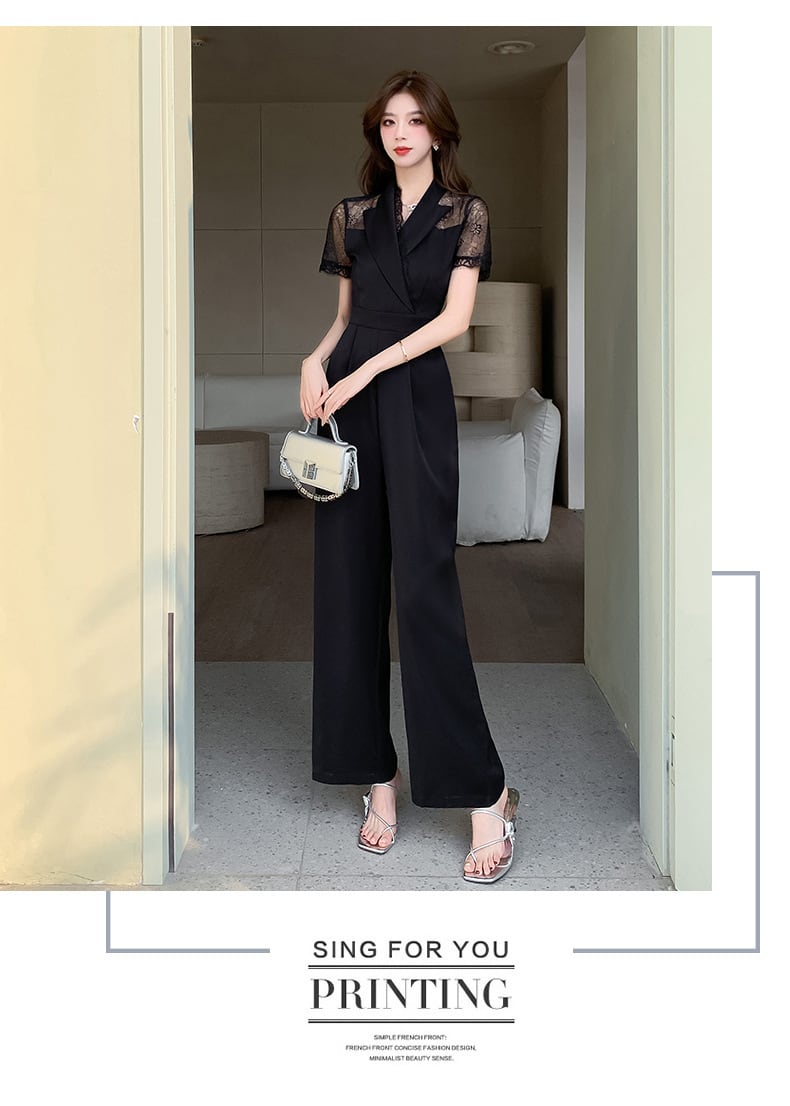 シアーなお袖が大人エレガントなオールインワンタイプのパンツドレス。