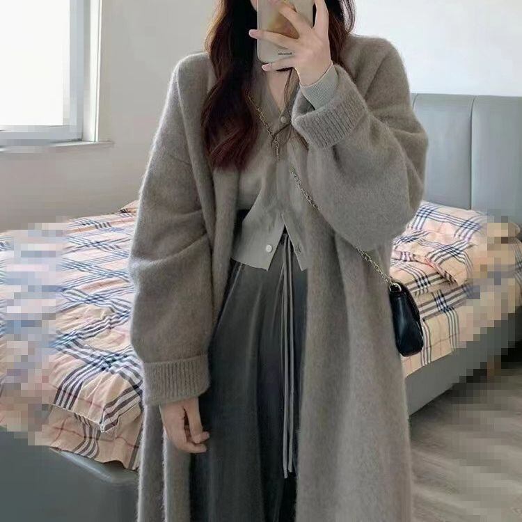 大人可愛い厚手のロング丈コーディガン。