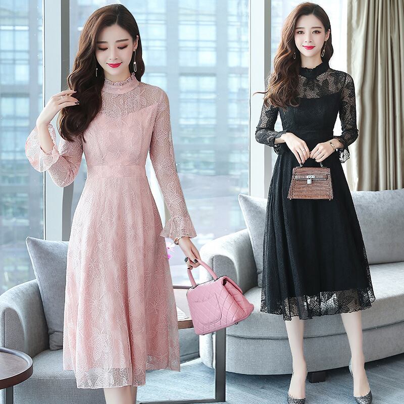 大人エレガントな総レースのパーティードレス。