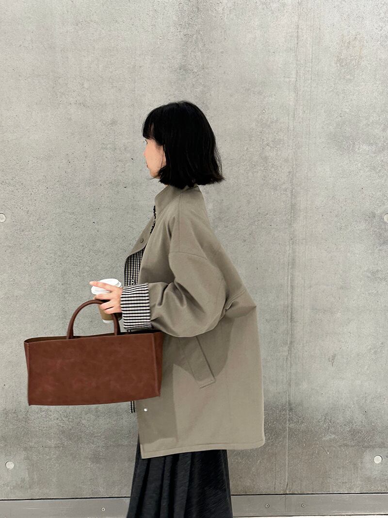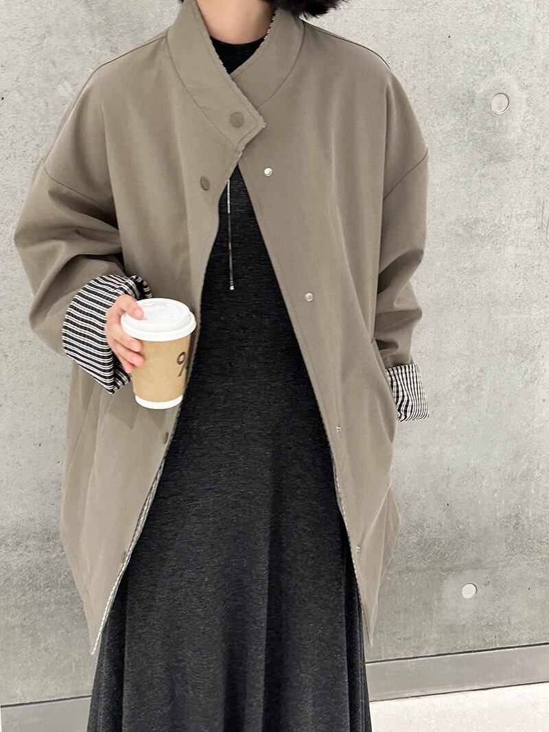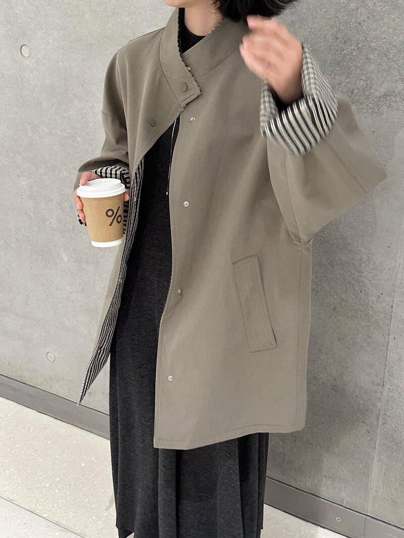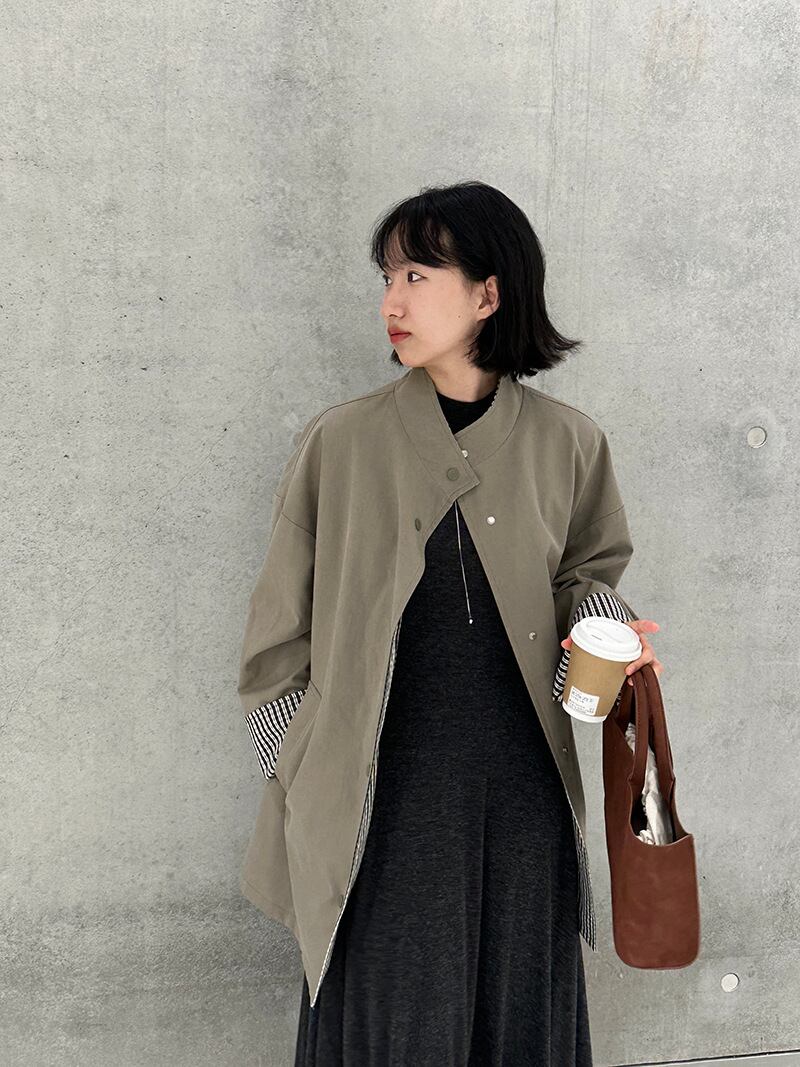 お首まわりまであたたかいハイネックのミドル丈トレンチコート。