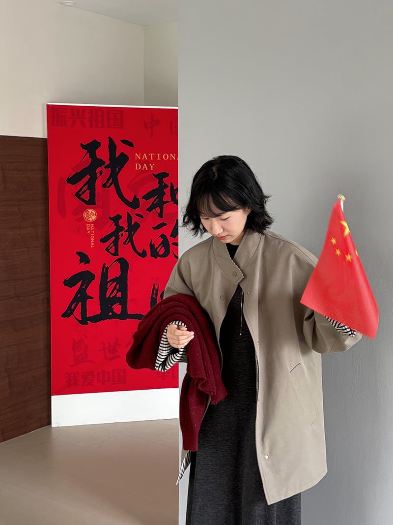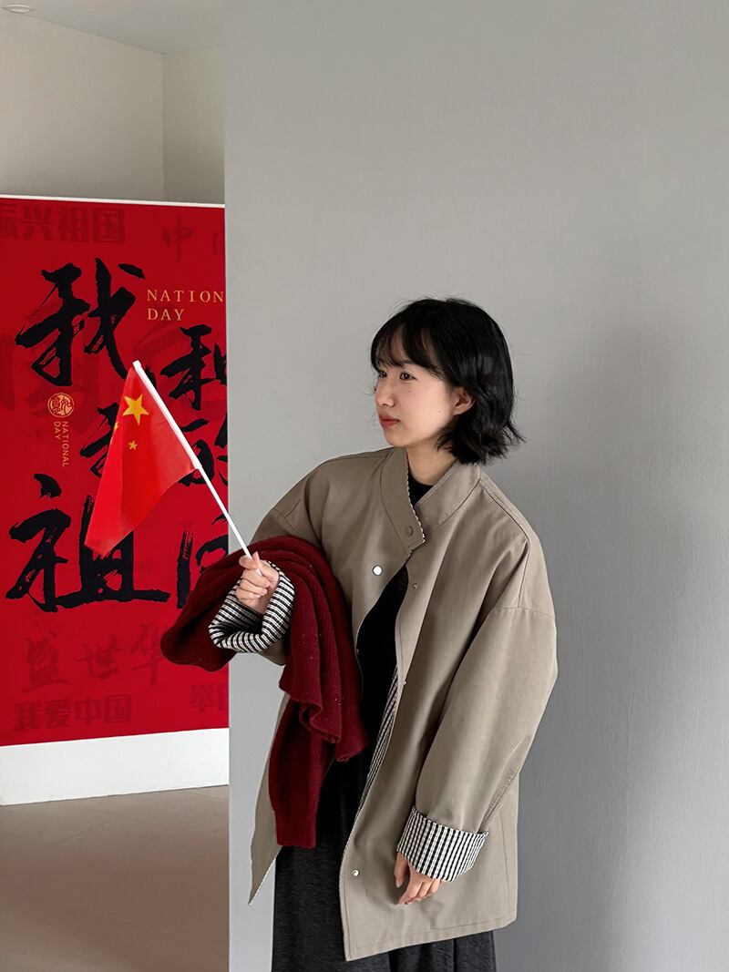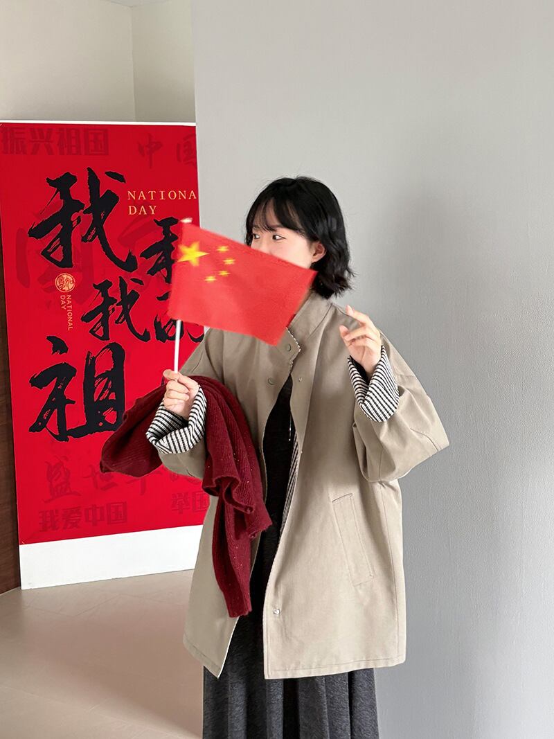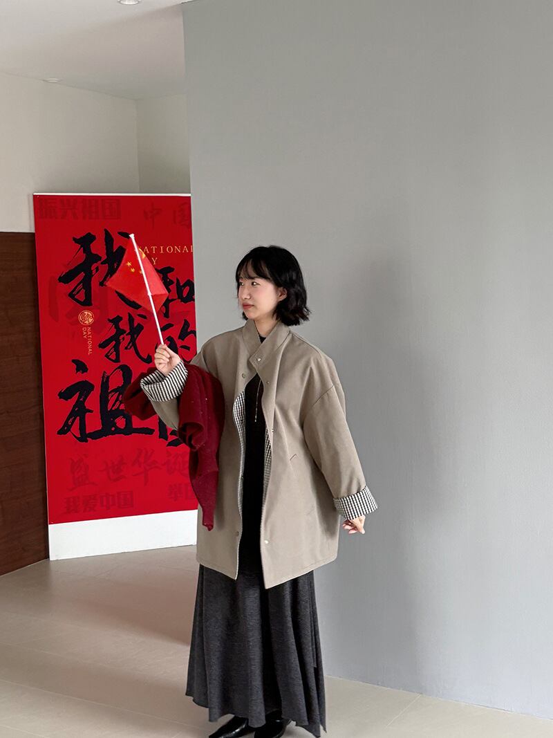 お首まわりまであたたかいハイネックのミドル丈トレンチコート。