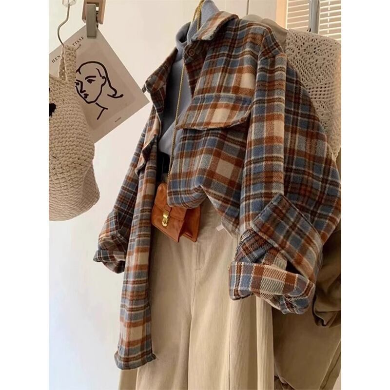 【シャツ】 シャツ レディース 大人 可愛い トップス シャツ ブラウス 韓国 ブラウス 春 秋 冬 20代 30代 40代 シンプル オフィス レディース フォーマル 体型カバー きれいめ 長袖 チェック ネイビー 青 ブラウン 茶色 S M L XL