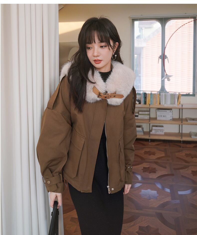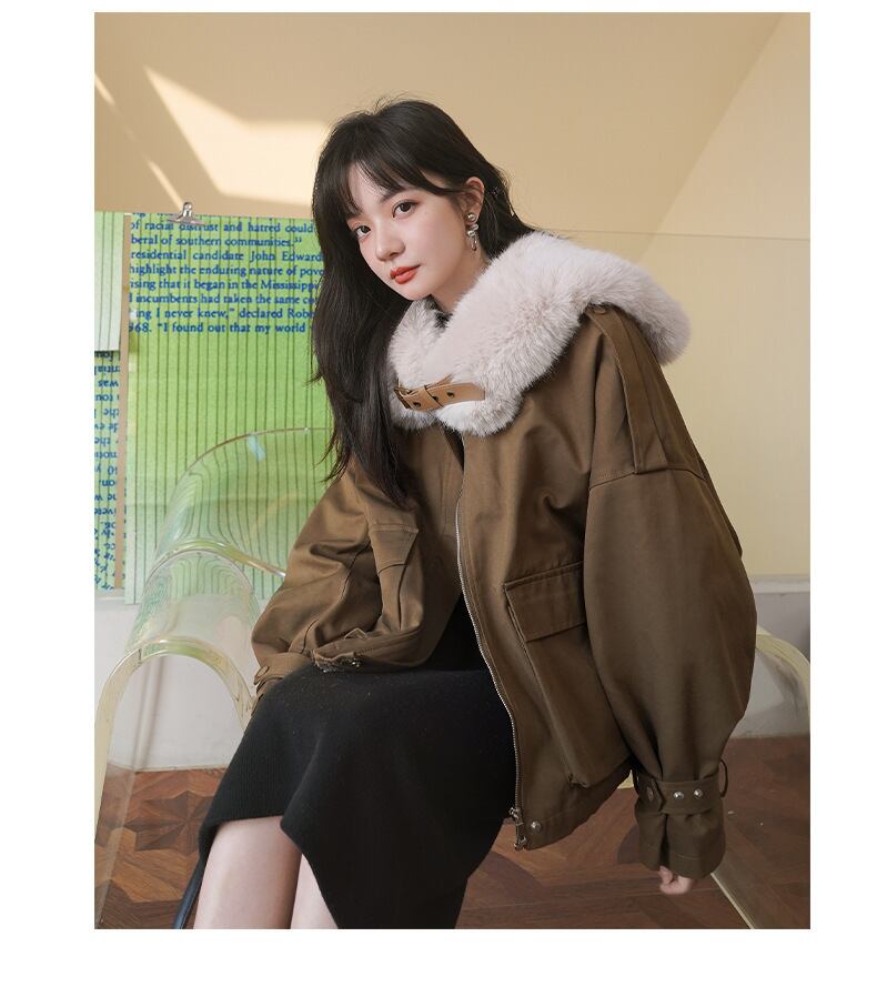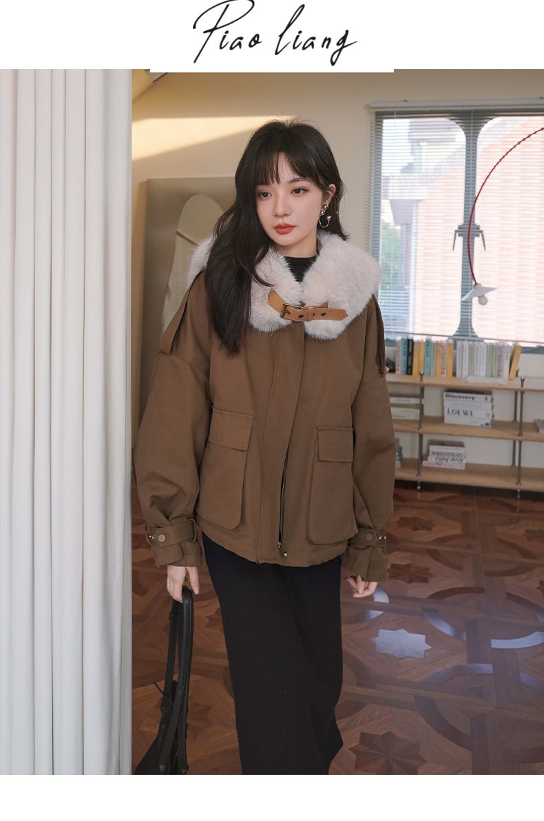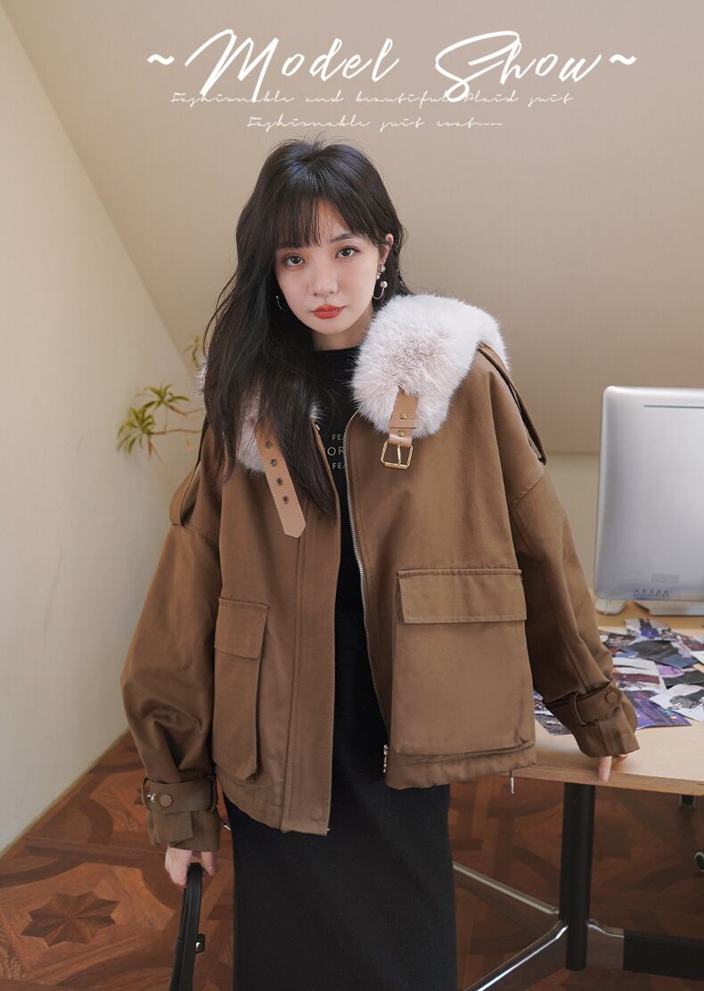 裏地がボアになった防寒効果高めなファー付きブルゾン。