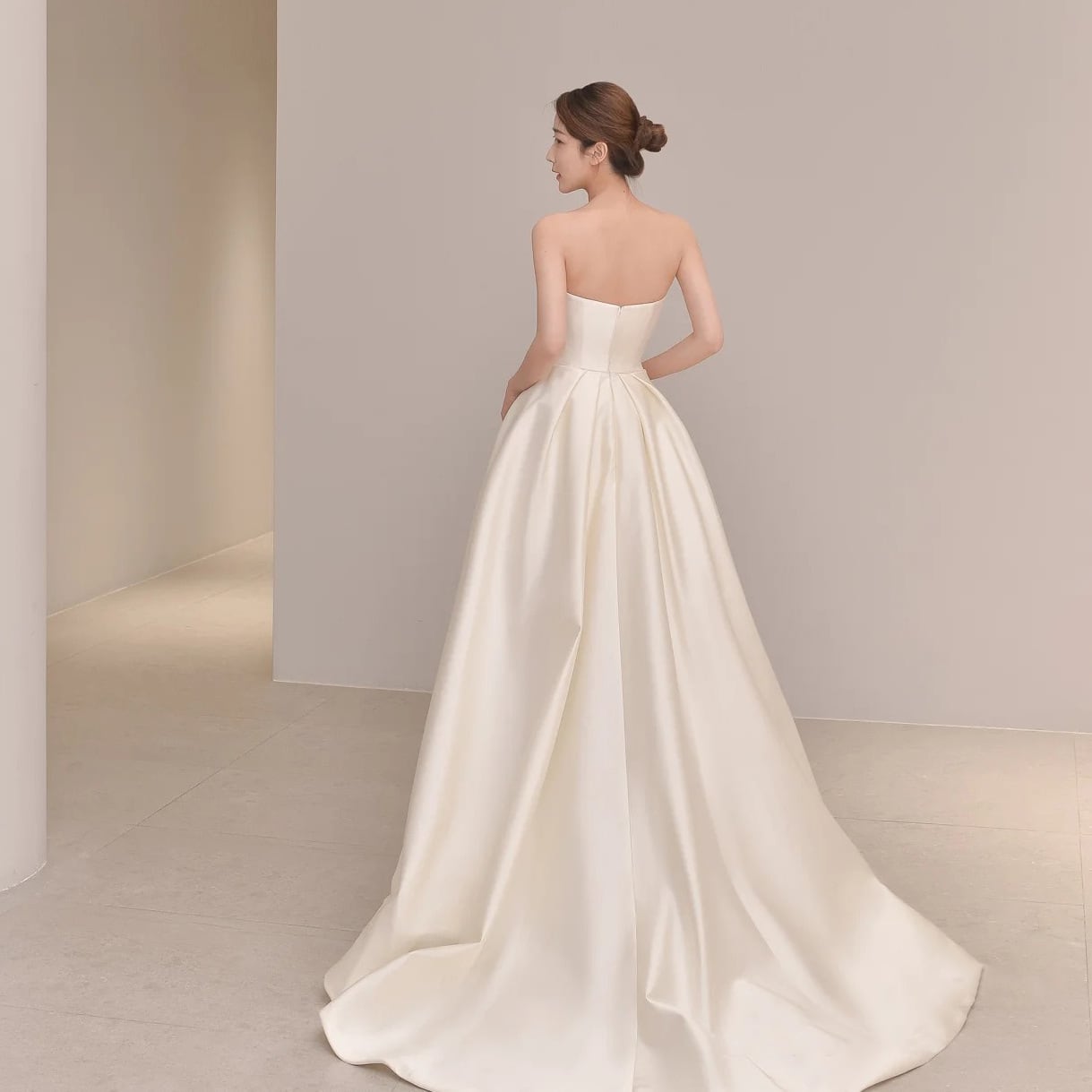 余計な装飾のないシンプルなデザインは花嫁様を引き立てる。