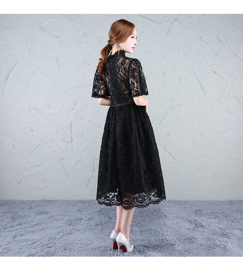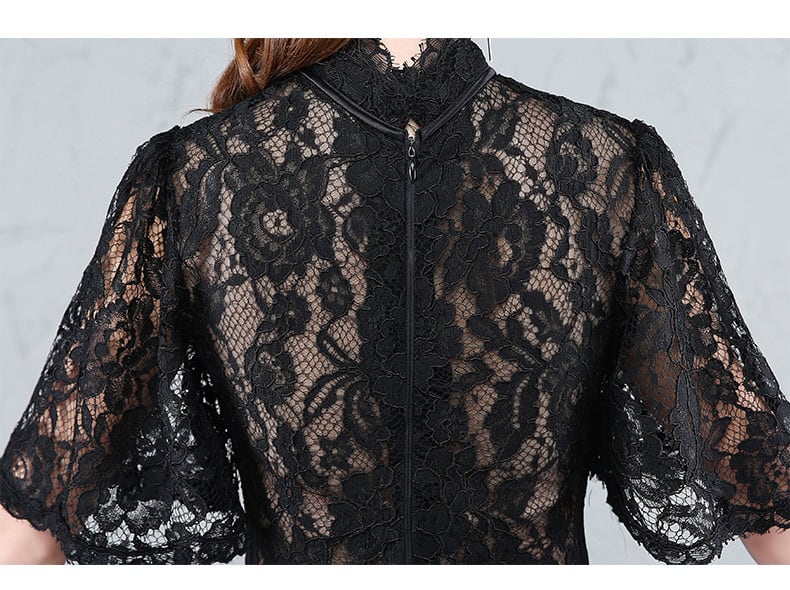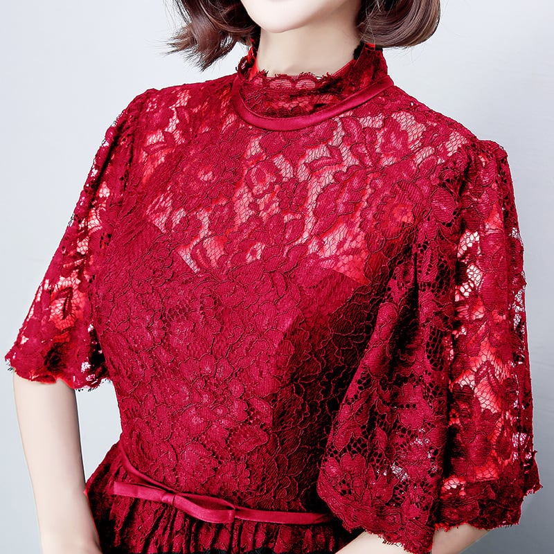 大人可愛いフレアスリーブが印象的な総レースのパーティードレス。
