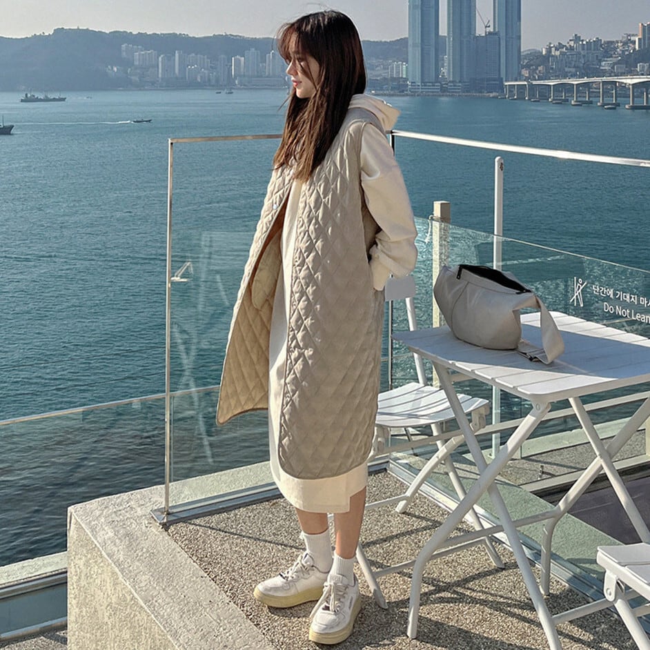 【コート】キルティングジャケット ブルゾン レディース きれいめ ブルゾン ロング ジレ ベスト アウター 春 秋 冬 20代 30代 40代 ジャケット アウター カジュアル おしゃれ かっこいい ネイビー 青 ブラック 黒 ベージュ M L XL