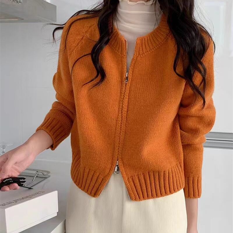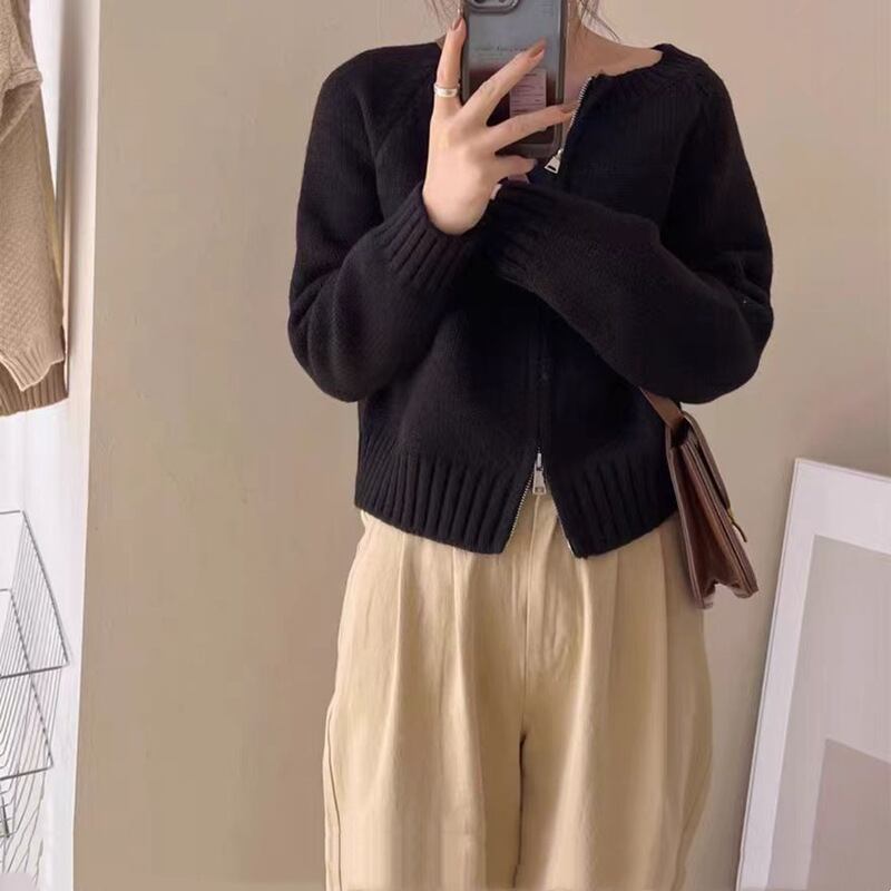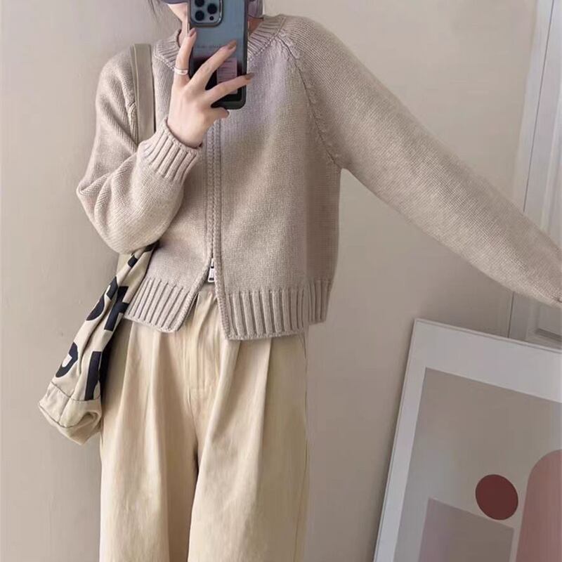 コンパクトなサイズ感のダブルジッパーカーディガン。