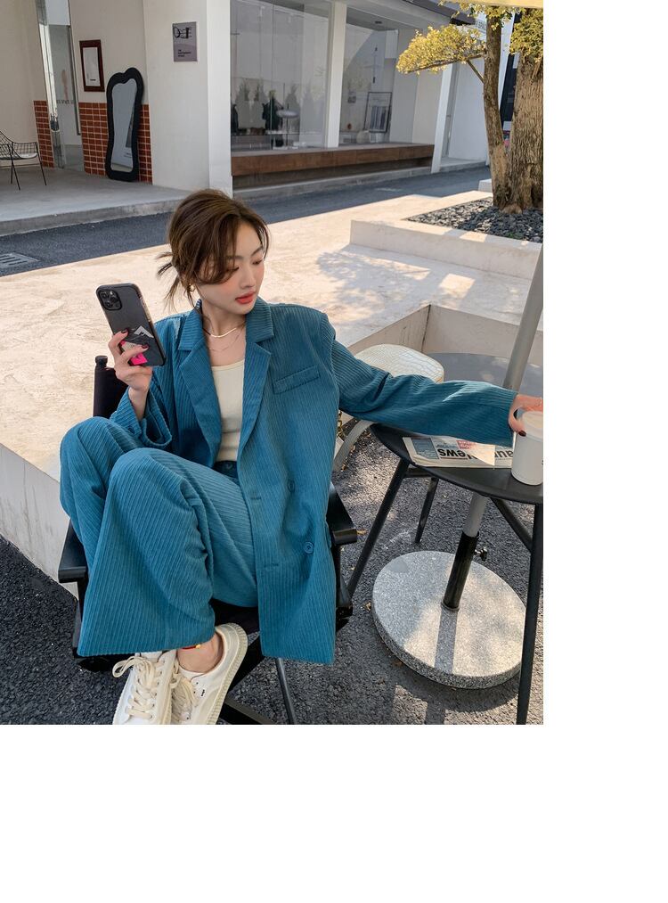 【セットアップ】 セットアップ レディース おしゃれ パンツ コーデュロイ ジャケット 春 秋 冬 20代 30代 40代 きれいめ 2点セット ピーコックブルー 青 水色 S M L XL