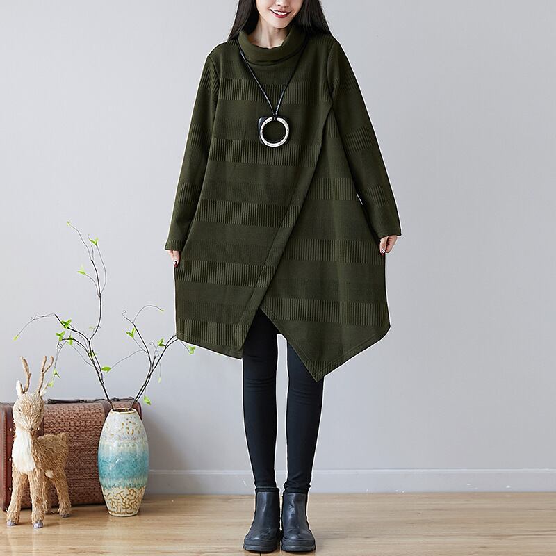 大人カジュアルなアシンメトリーなミディ丈ワンピース。
