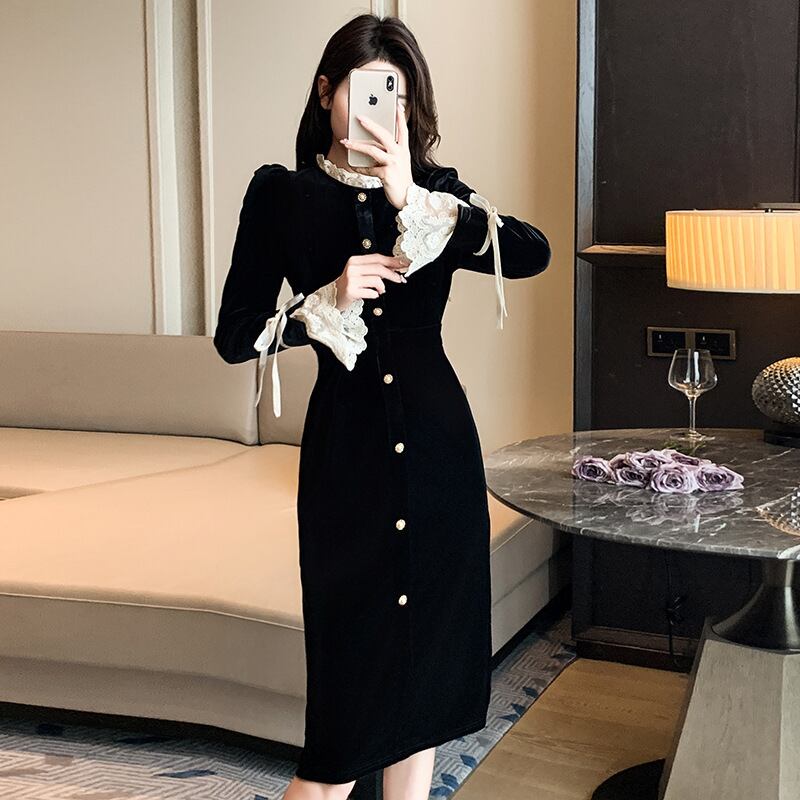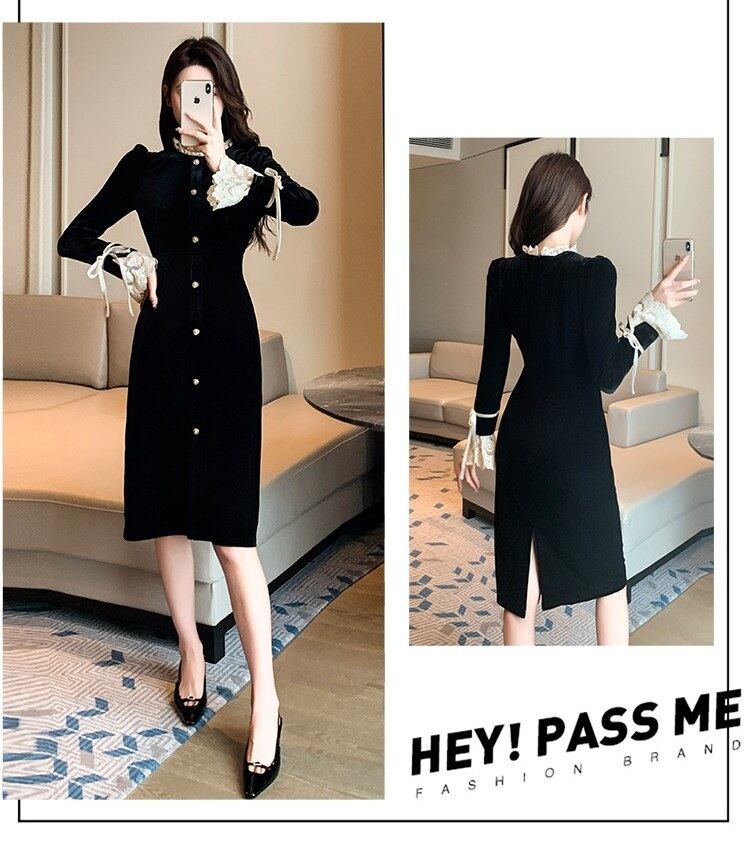 丈感の選べる大人可愛いベルベット素材のバイカラーパーティードレス。