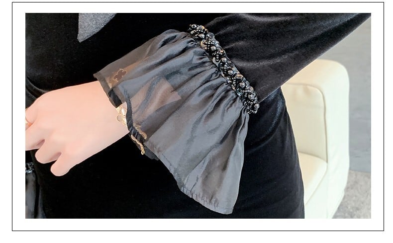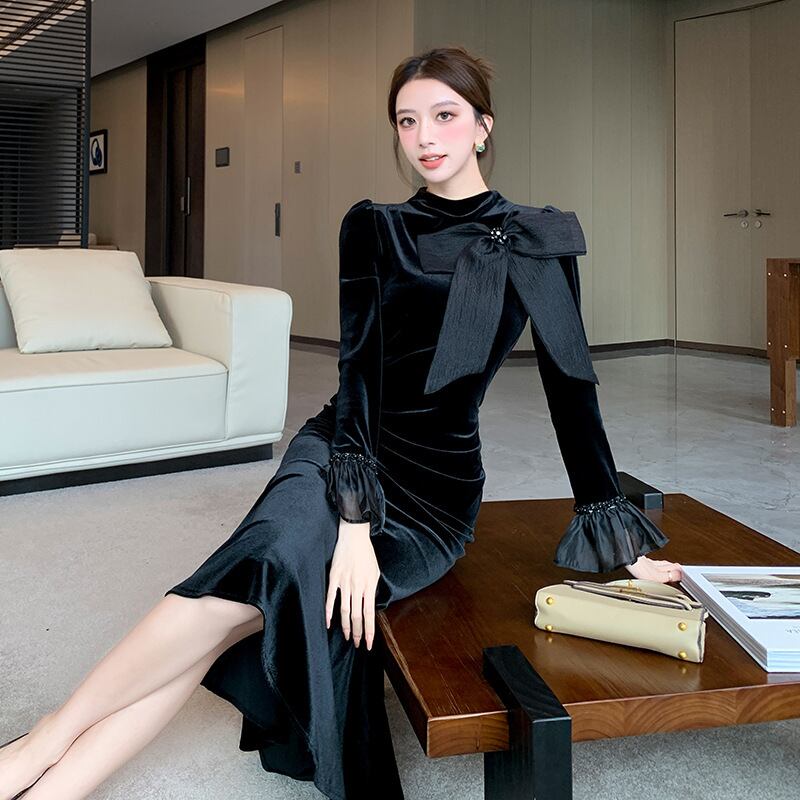 大人エレガントなベルベット素材のマーメイドラインパーティードレス。