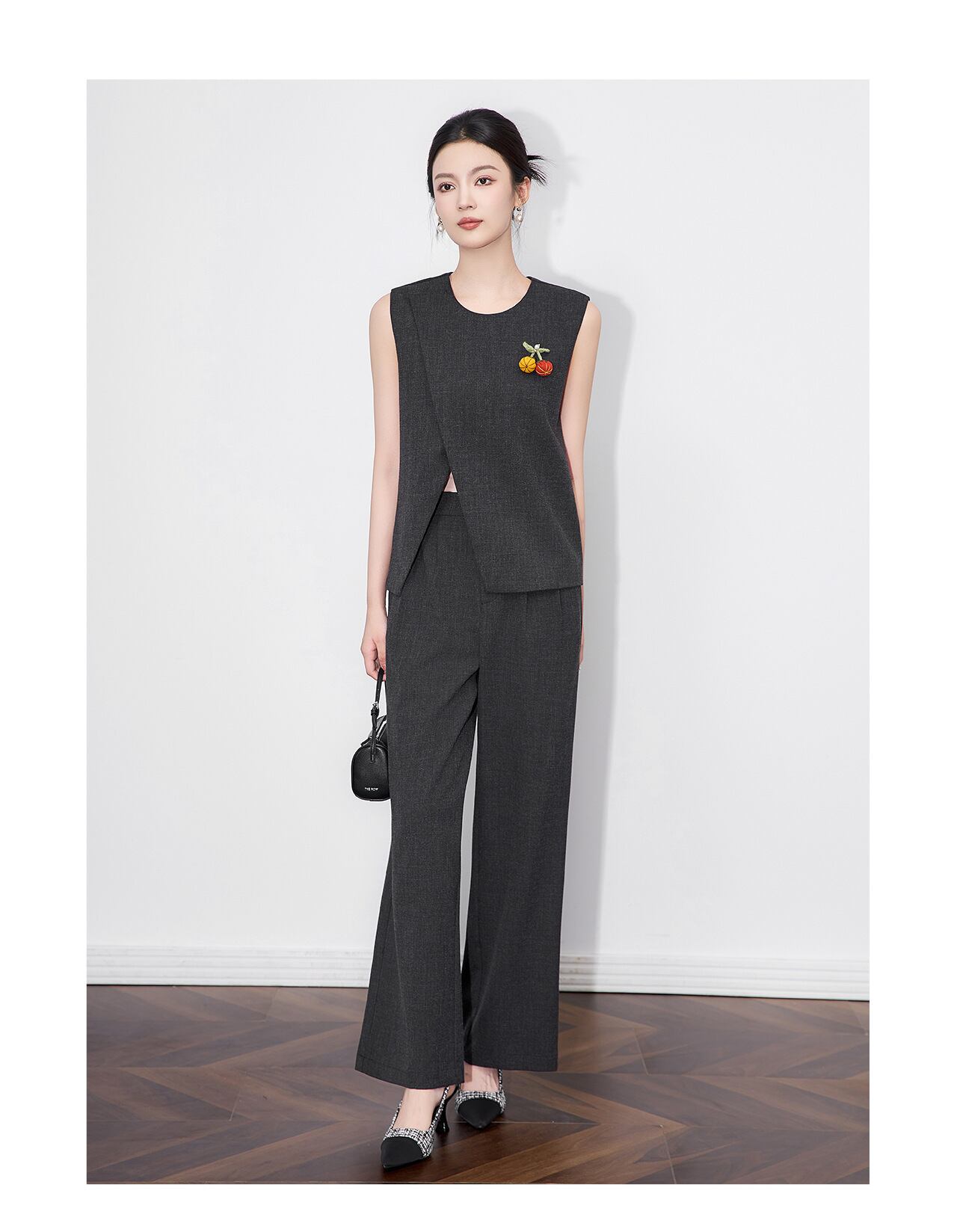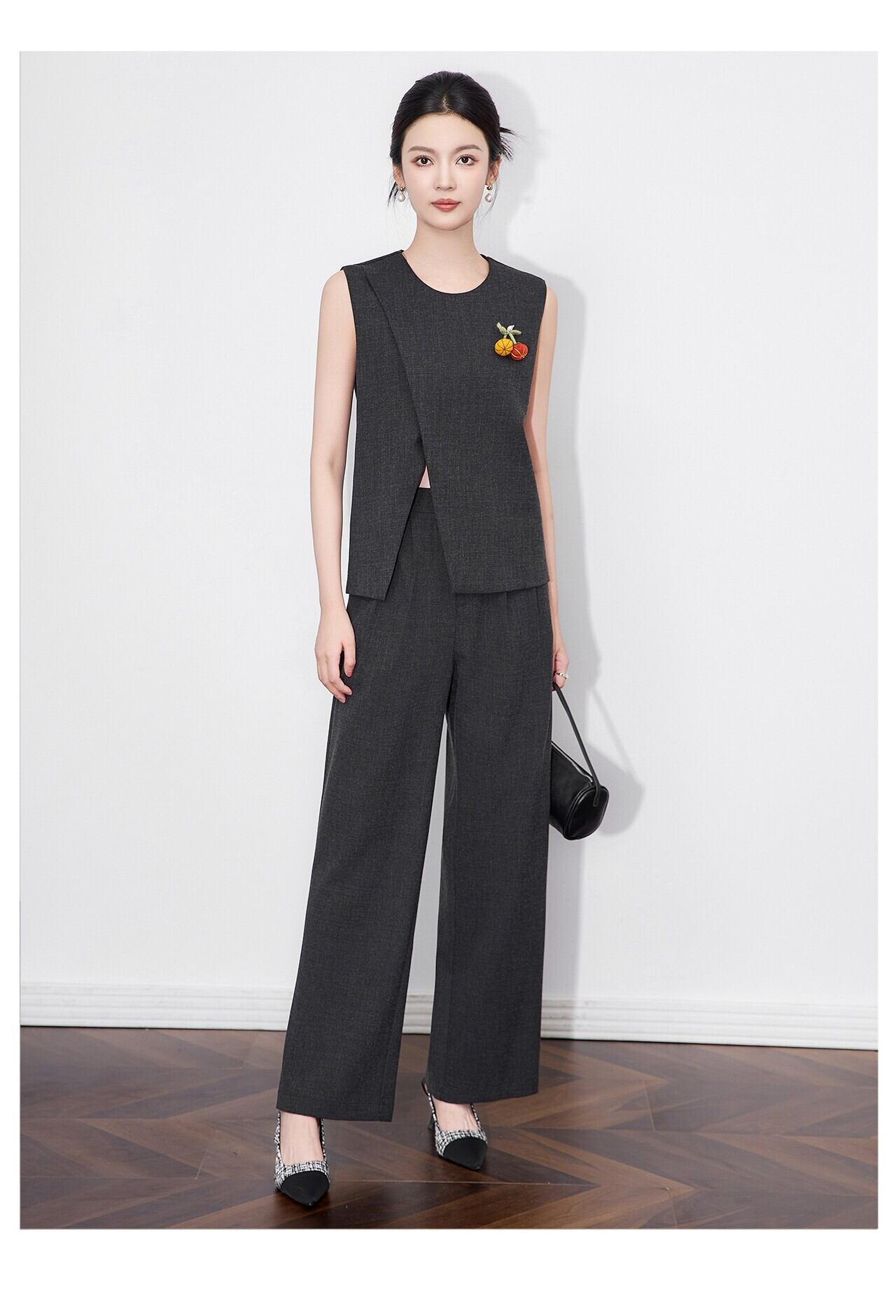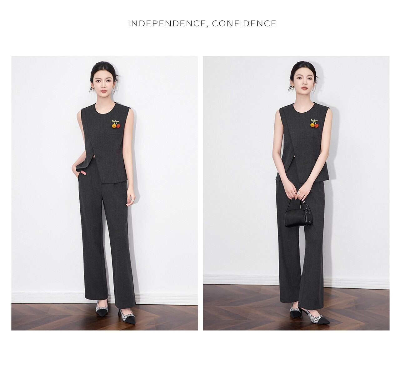 大人かっこいいノースリーブトップス+パンツのセットアップドレス。