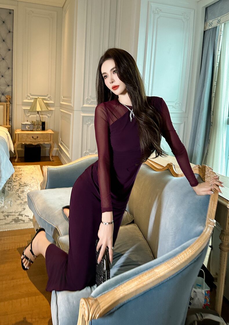 【パーティードレス】大きいサイズ パーティードレス 結婚式 お呼ばれ ドレス 結婚式のお呼ばれ お呼ばれ ワンピース 黒 ブラック ミモレ ワンピース 20代 30代 40代 卒業式 謝恩会 成人式 同窓会 フォーマルドレス 袖あり ミモレ 体型カバー お呼ばれ 二次会 フォーマルワンピース シンプル かっこいい おしゃれ ブラック 黒 パープル 紫 S M L XL 2XL