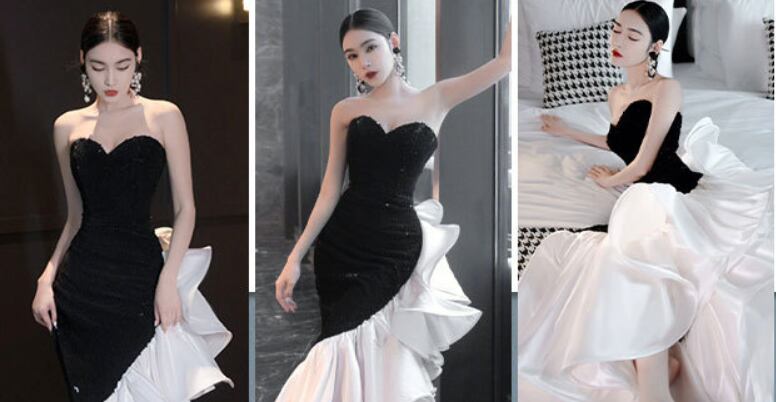 大人エレガントなバイカラーのマーメイドラインドレス。
