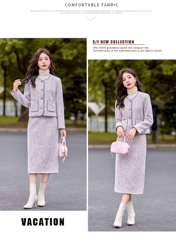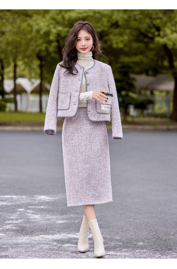 【セットアップ】大きいサイズ セットアップ レディース おしゃれ スカート ツイード ジャケット 春 秋 冬 20代 30代 40代 きれいめ 卒園式 入園式 卒業式 入学式 母親 母 ママ 服装 ママ ドレス ママスーツ ママジャケット セレモニースーツ スーツ ドレス 七五三 お宮参り 2点セット グレーパープル 紫 ピンク M L XL 2XL