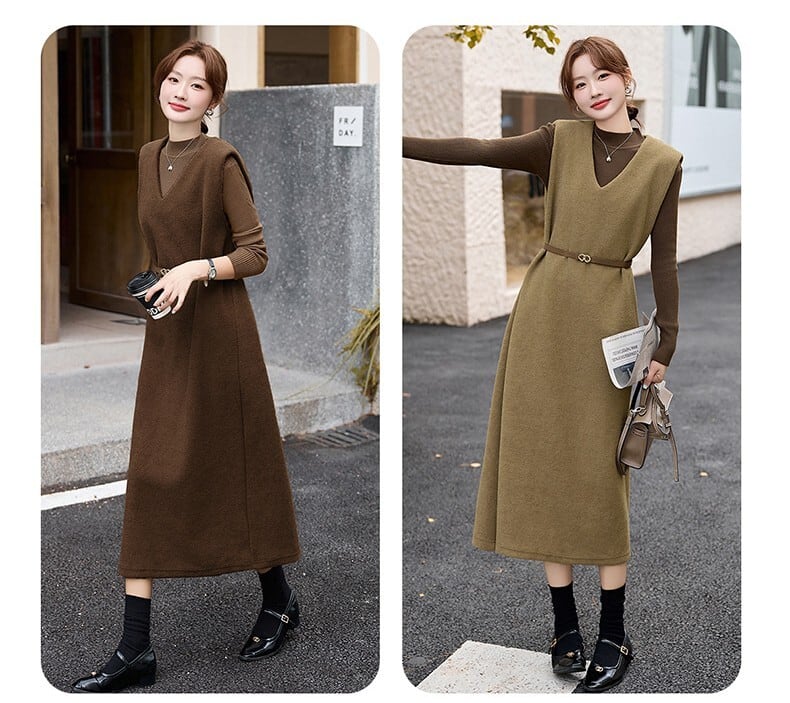 【ワンピース】大きいサイズ ワンピース レディース おしゃれ きれいめ 可愛い 春 秋 冬 ジャンパースカート ワンピース 20代 30代 40代 ロング ワンピース 春秋 ワンピースドレス 韓国 ワンピース ドレス ワンピース ベージュ ブラウン 茶色 M L XL 2XL