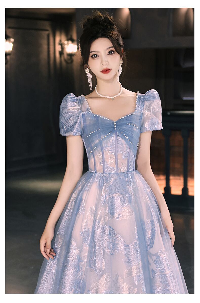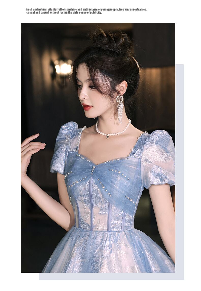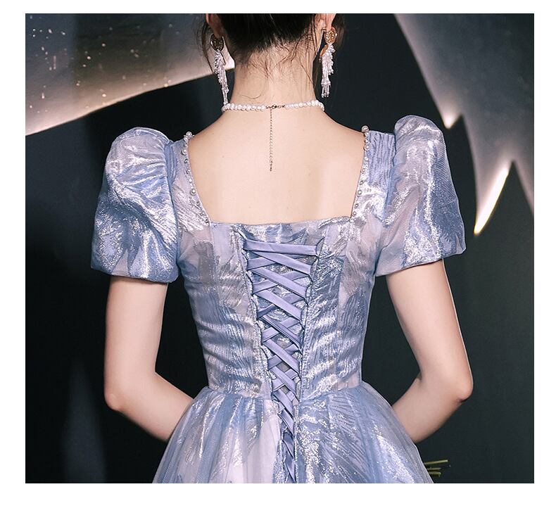 大人エレガントな透け感あるアイシーブルーのカラードレス。