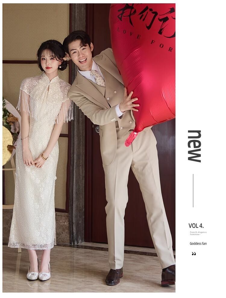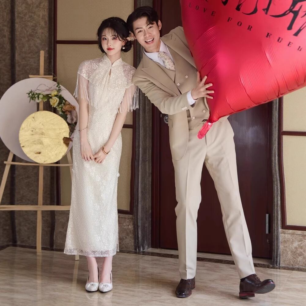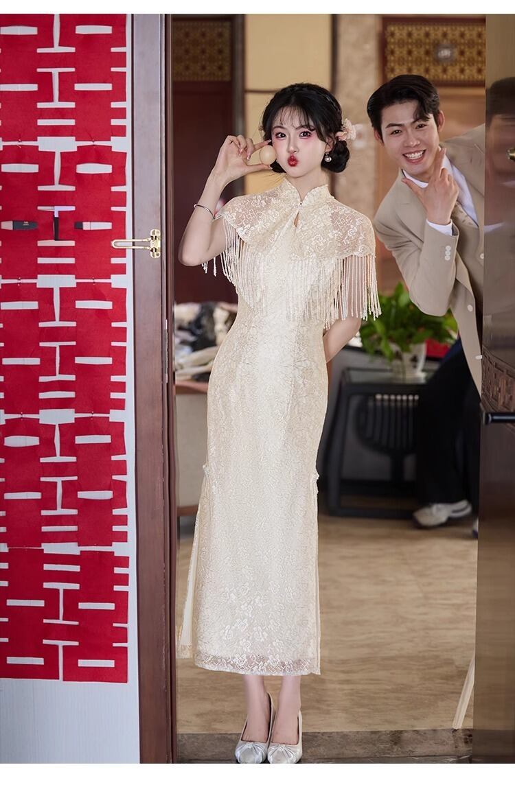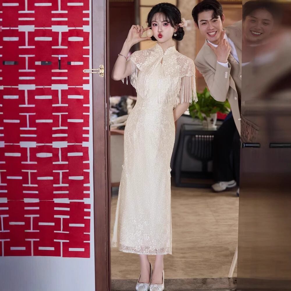 大人可愛いチャイナ風のマーメイドラインのカラードレス。