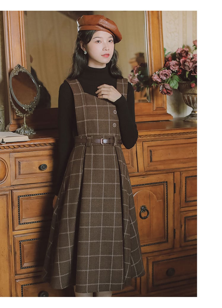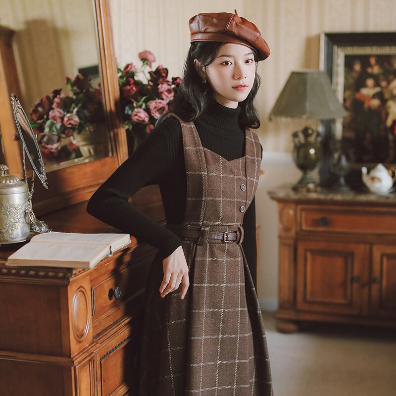 大人可愛いチェック柄のツイードジャンパースカート。