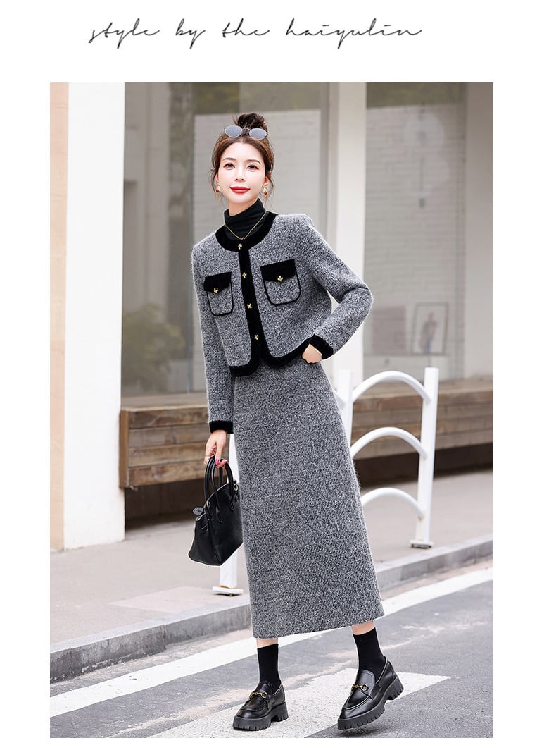 タイトシルエットのスカートで下半身を細くすっきりと見せます。