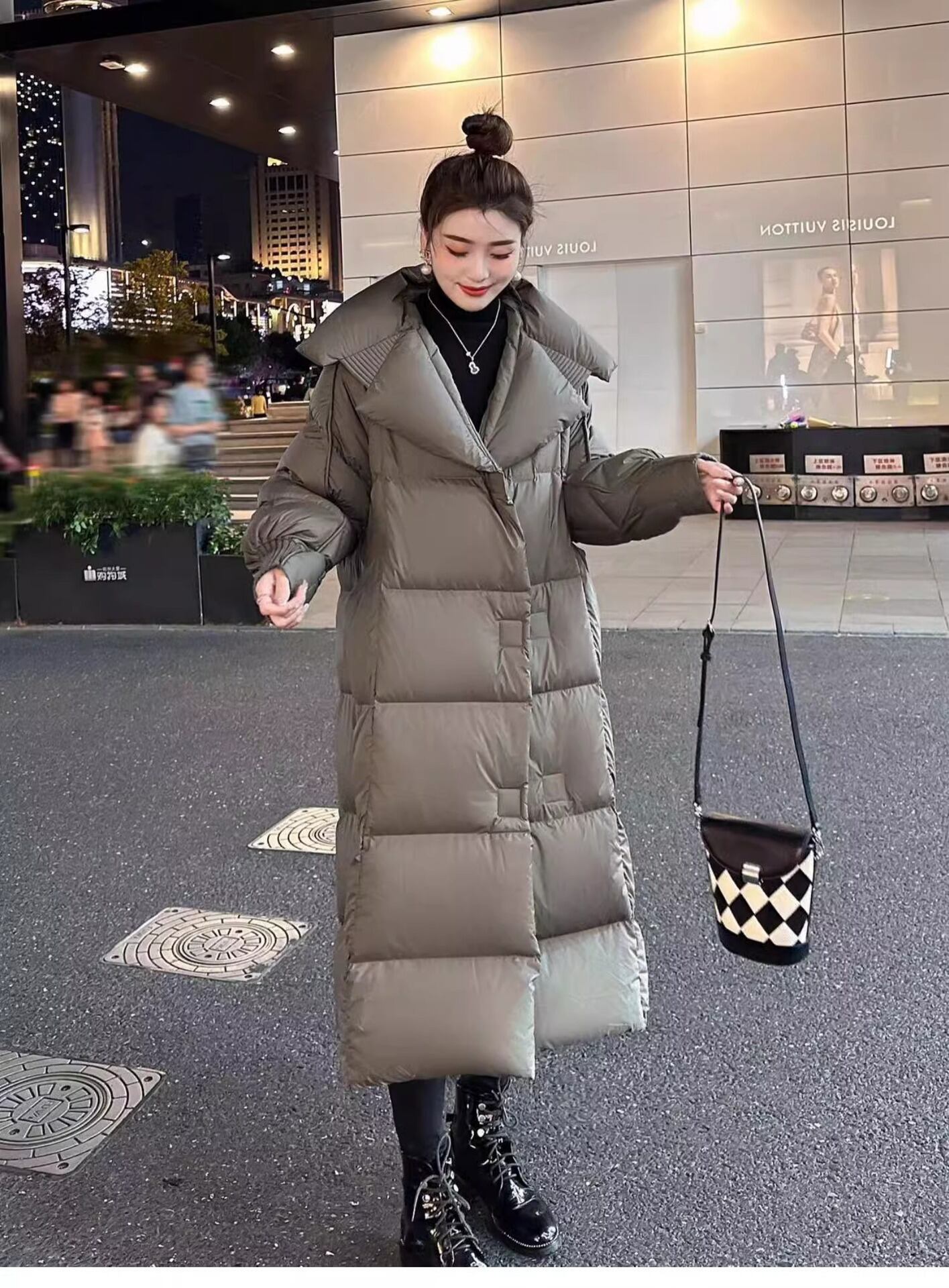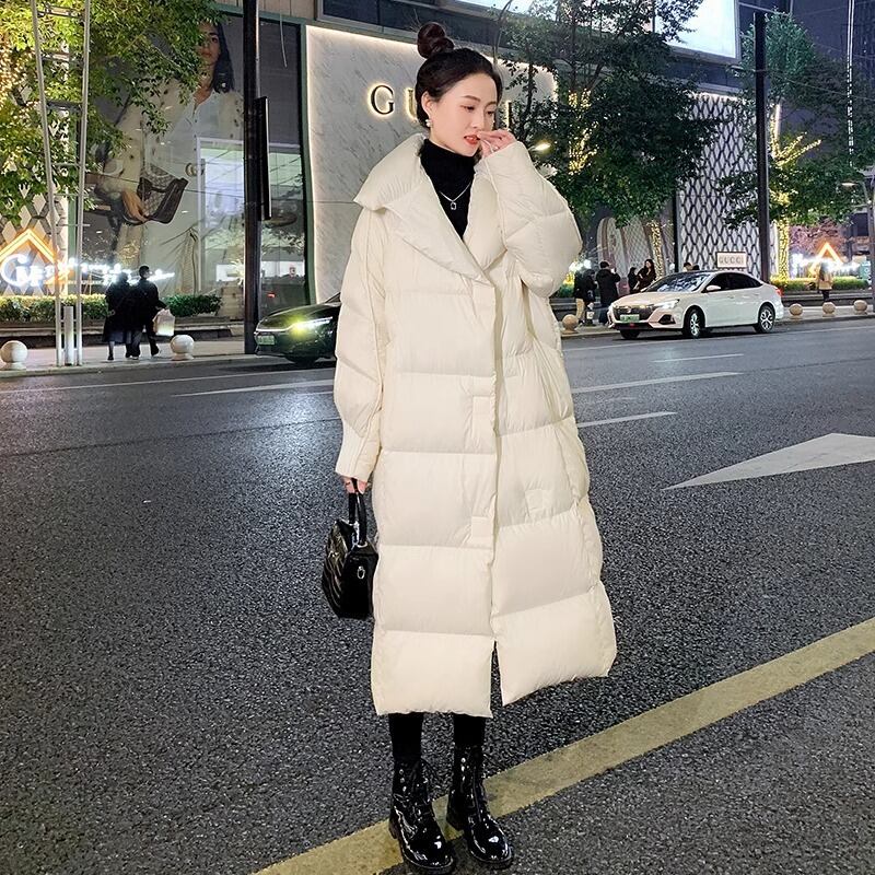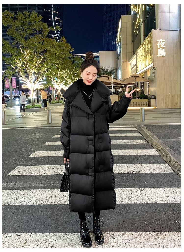大人エレガントなロング丈のダウンジャケット。