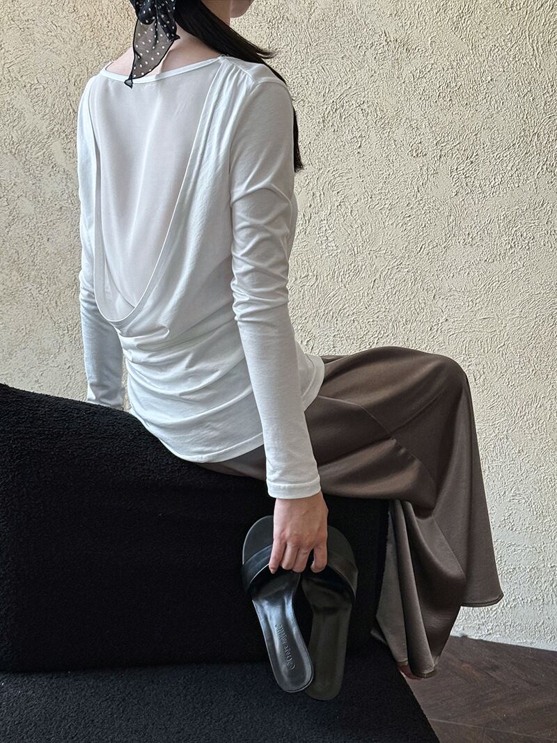 一枚で着て透け感を楽しんだりジャケットやカーディガンとレイヤードしても。